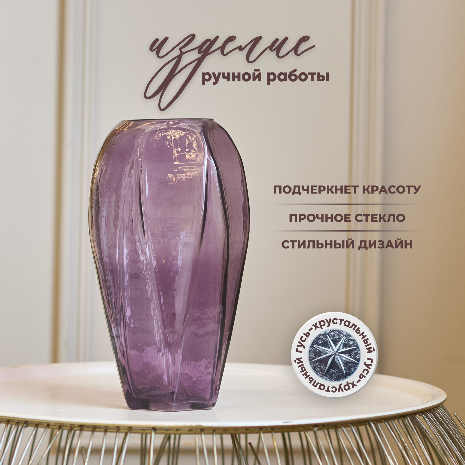 Купить Ваза для цветов и сухоцветов высокая, декоративная интерьерная стеклянная 4 л, лиловая