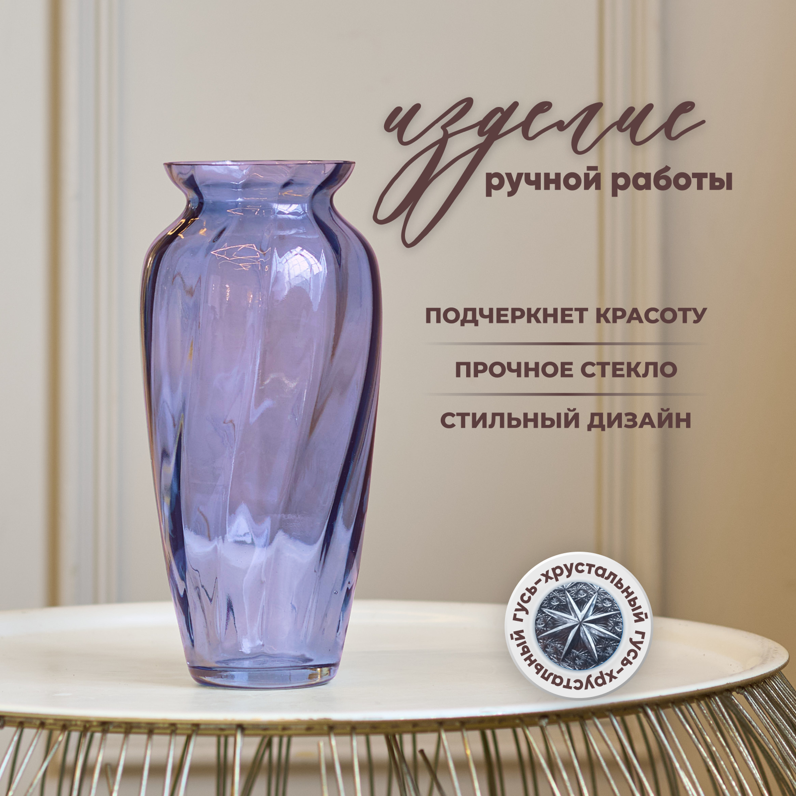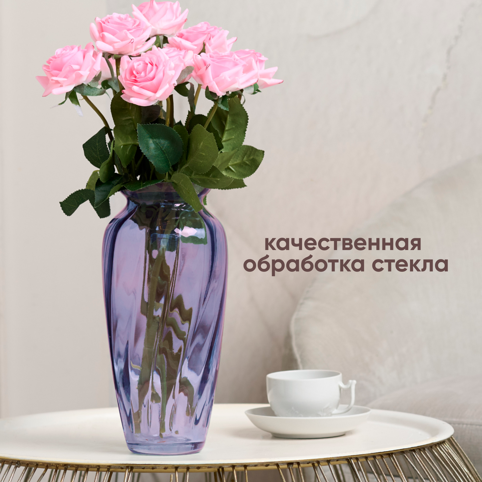 Ваза для цветов и сухоцветов высокая, декоративная интерьерная стеклянная 4 л, лиловая