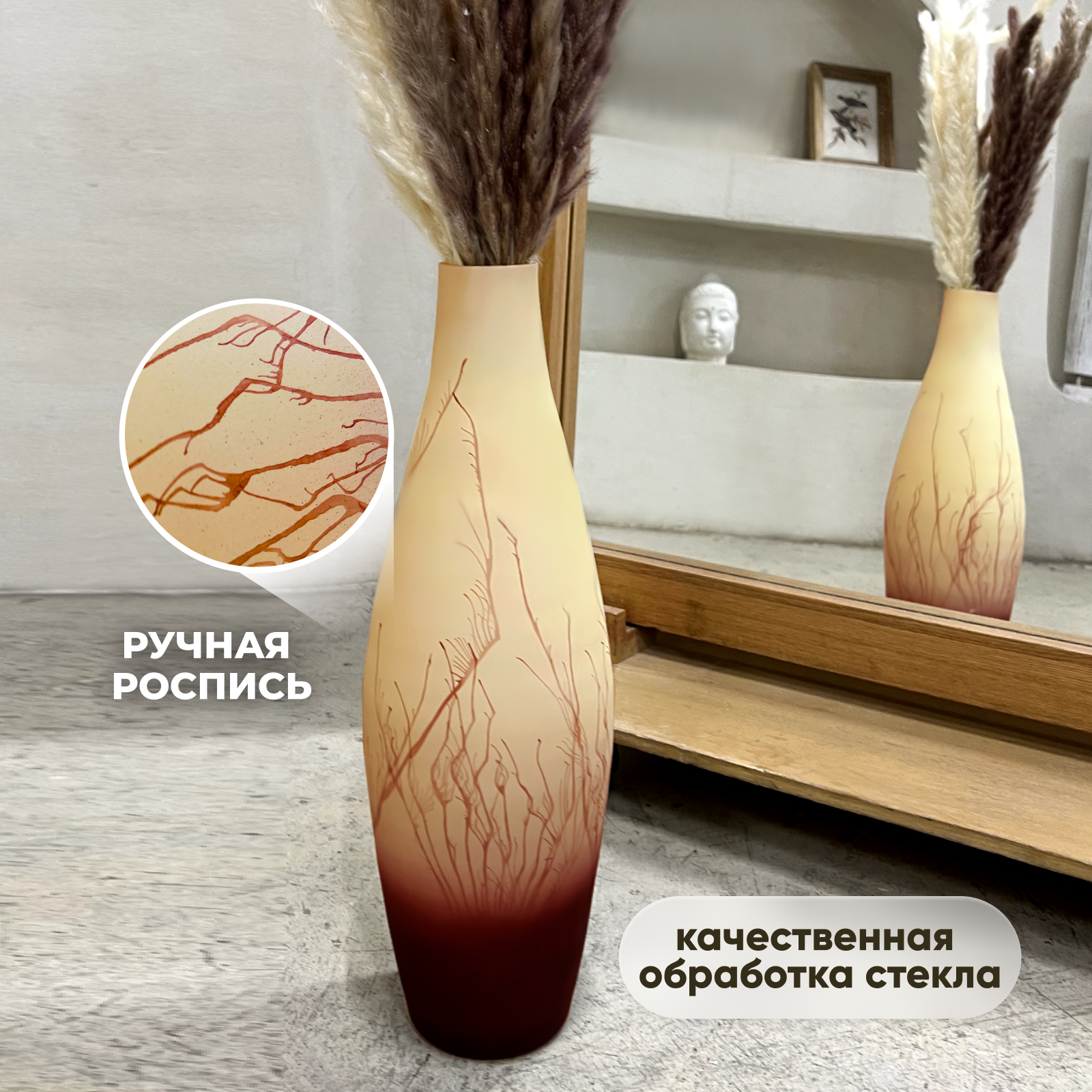 Ниже Вы можете прочитать отзывы на Ваза для цветов и сухоцветов высокая, декоративная интерьерная 3 л, 40 см, цвет песочный, ознакомится с подробными характеристиками, посмотреть интересные обзоры и фотографии на Ваза для цветов и сухоцветов высокая, декоративная интерьерная 3 л, 40 см, цвет песочный.