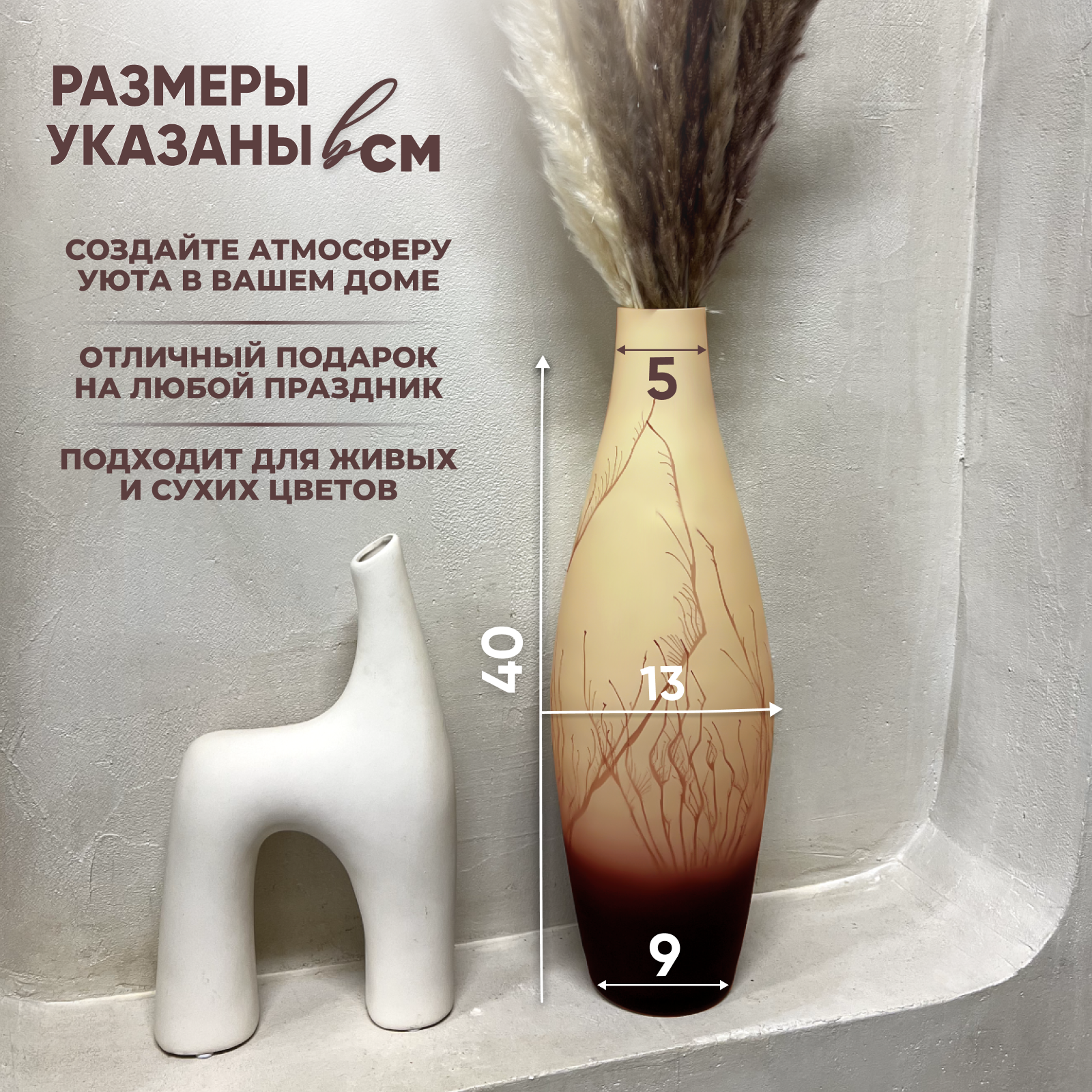 Купить Ваза для цветов и сухоцветов высокая, декоративная интерьерная 3 л, 40 см, цвет песочный