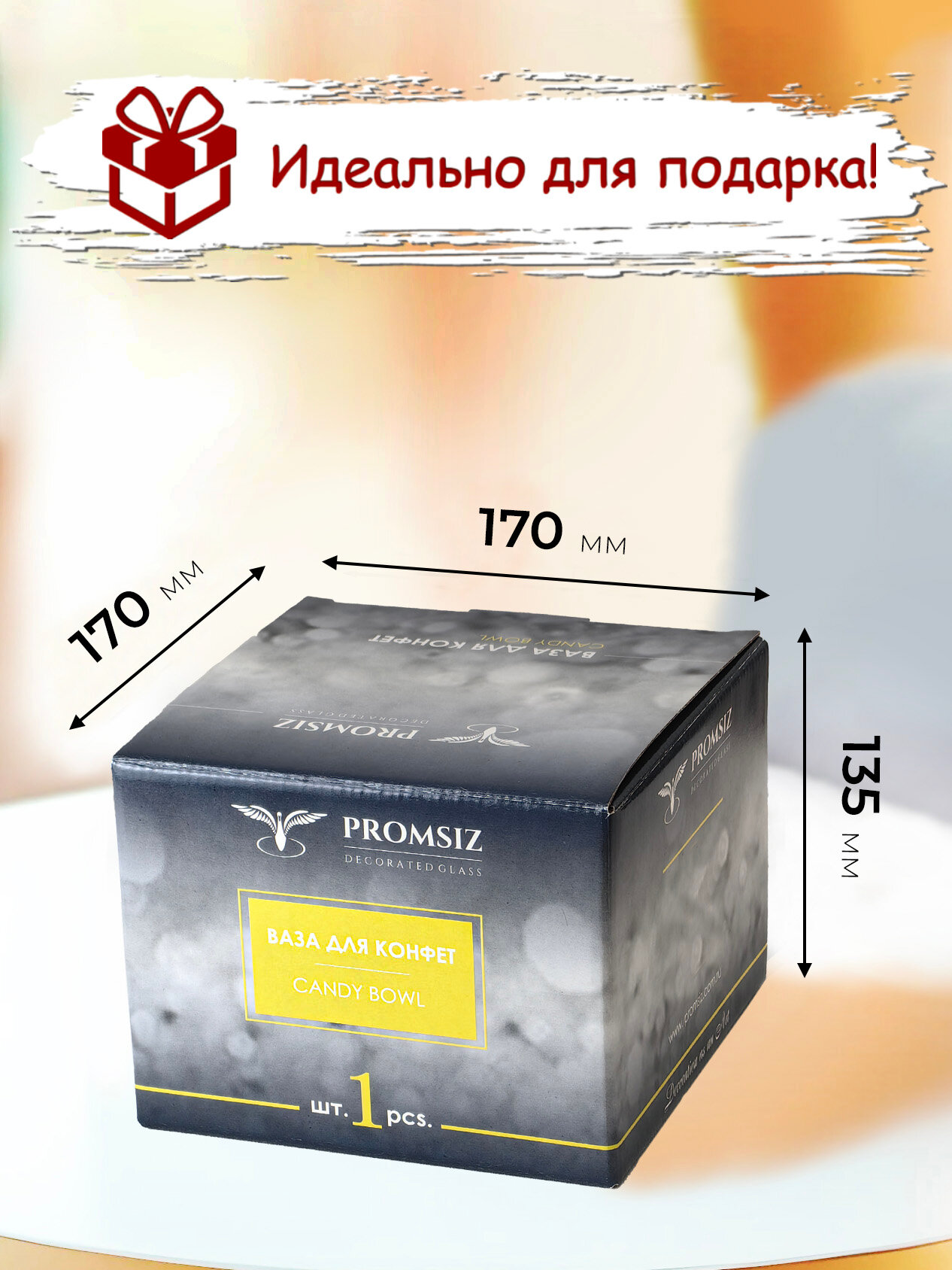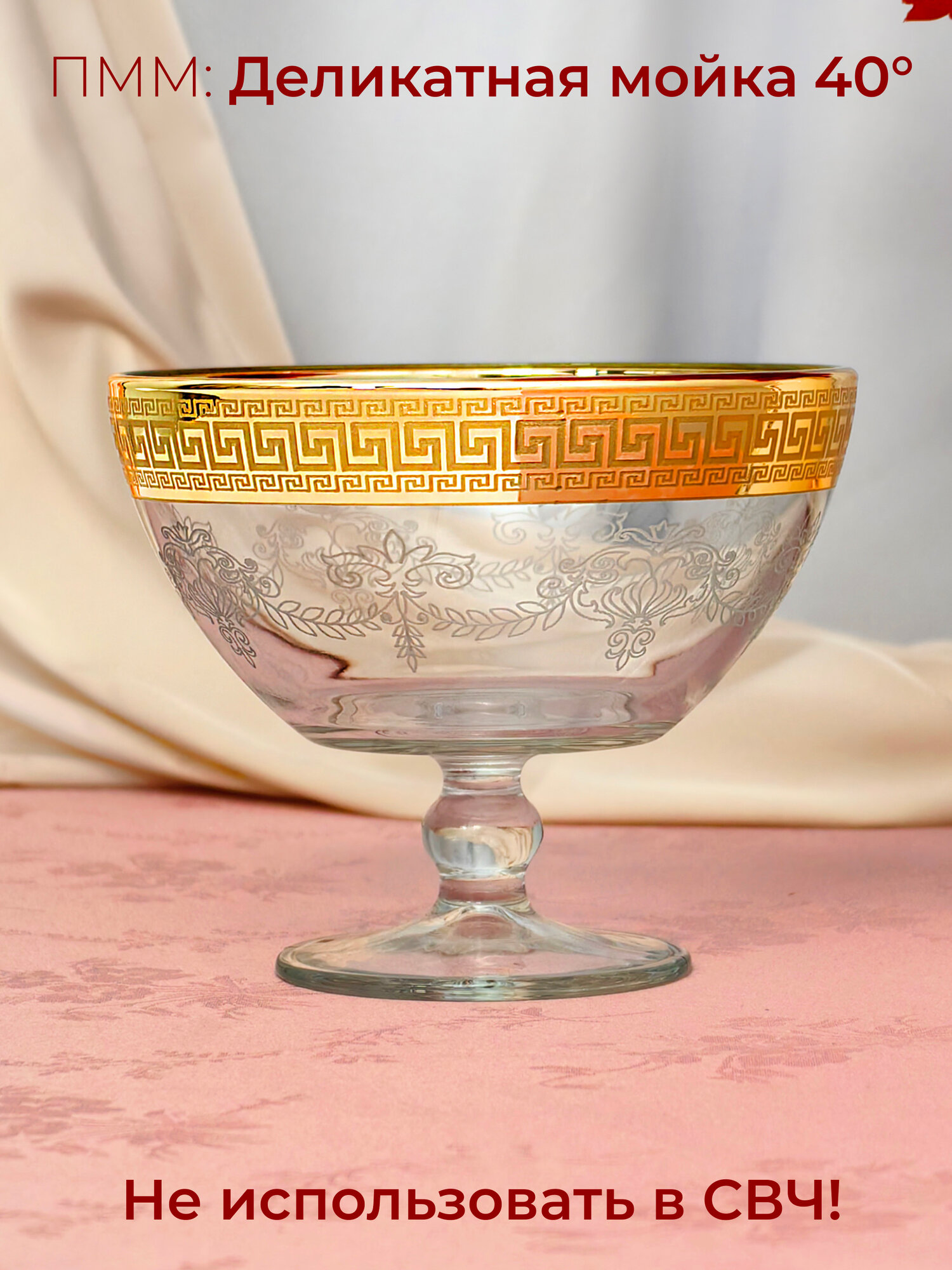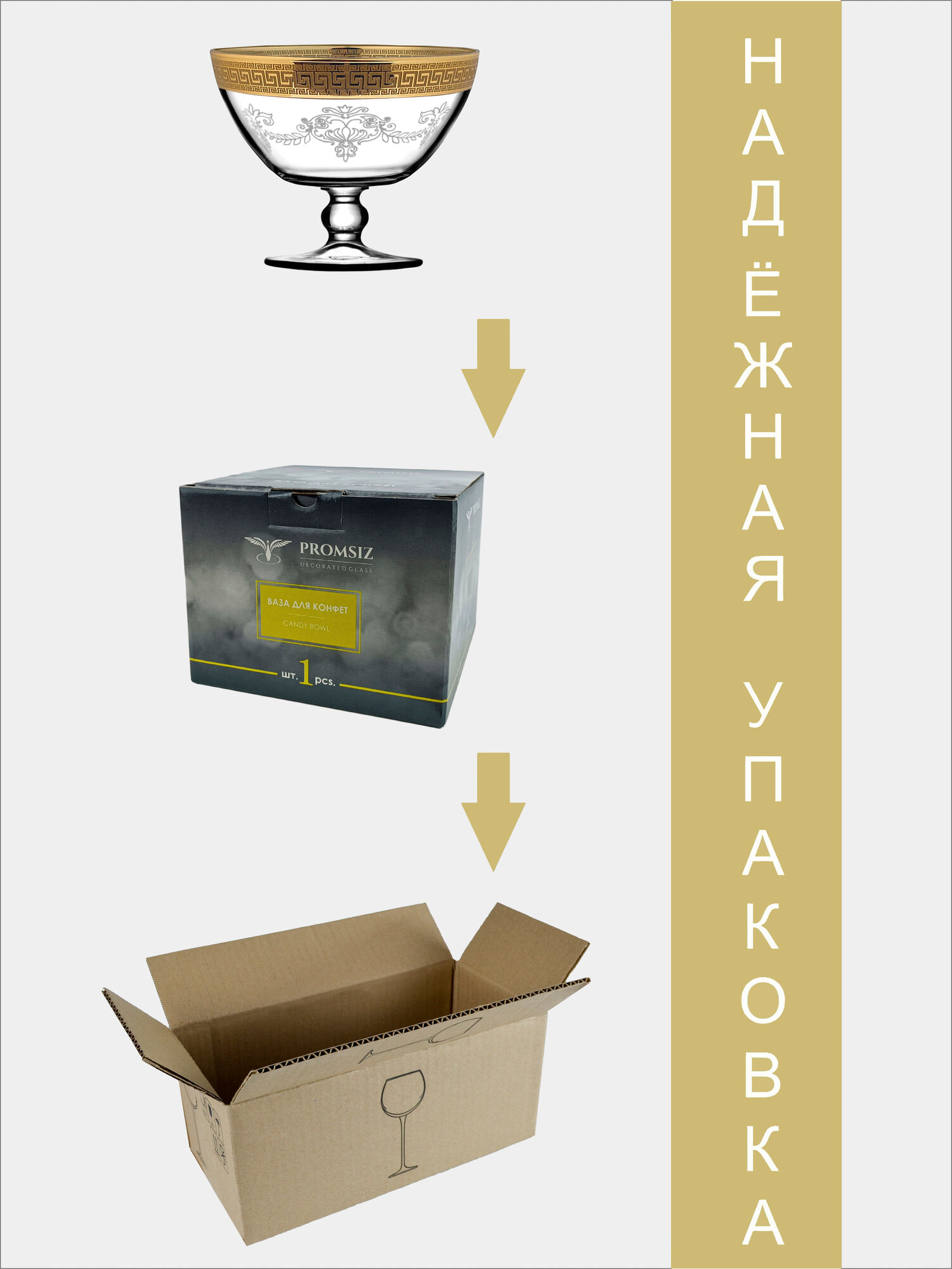 Ваза стеклянная на ножке для конфет в подарочной упаковке с алмазной гравировкой PROMSIZ греческий узор, 500 мл, 1 шт.