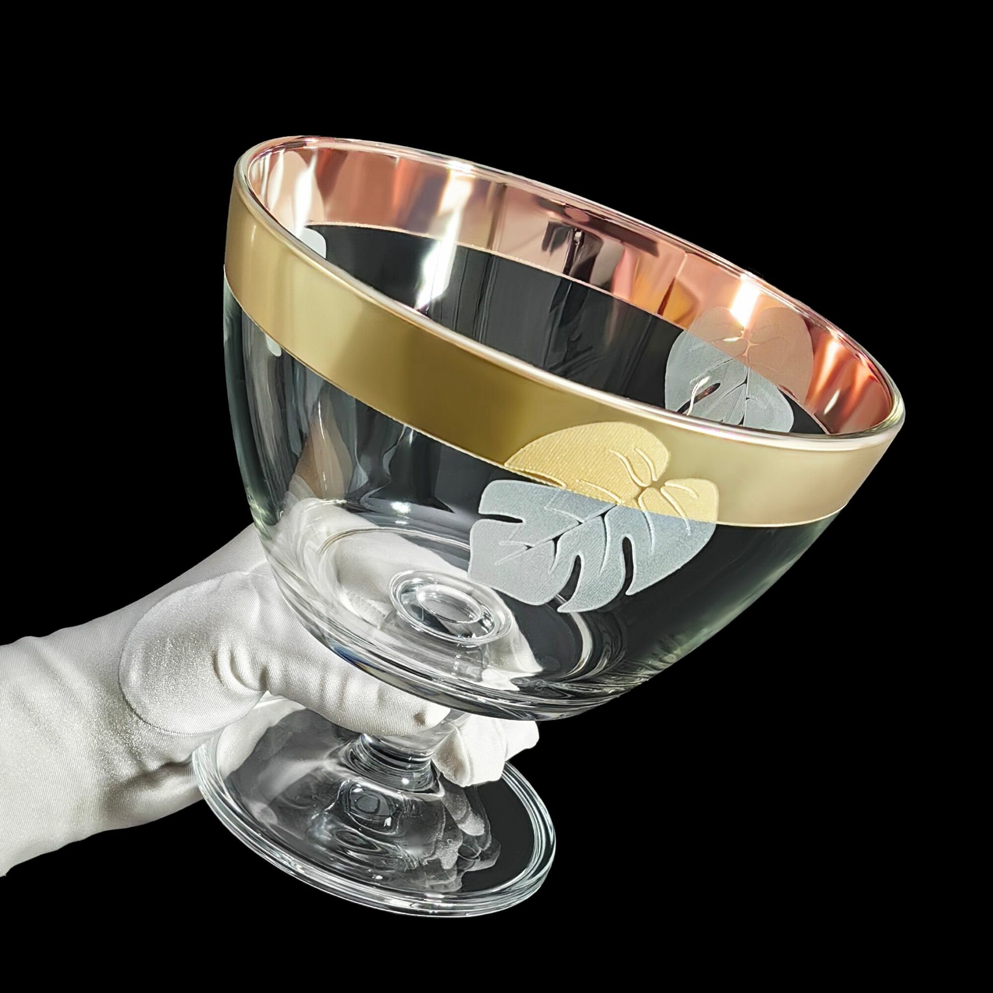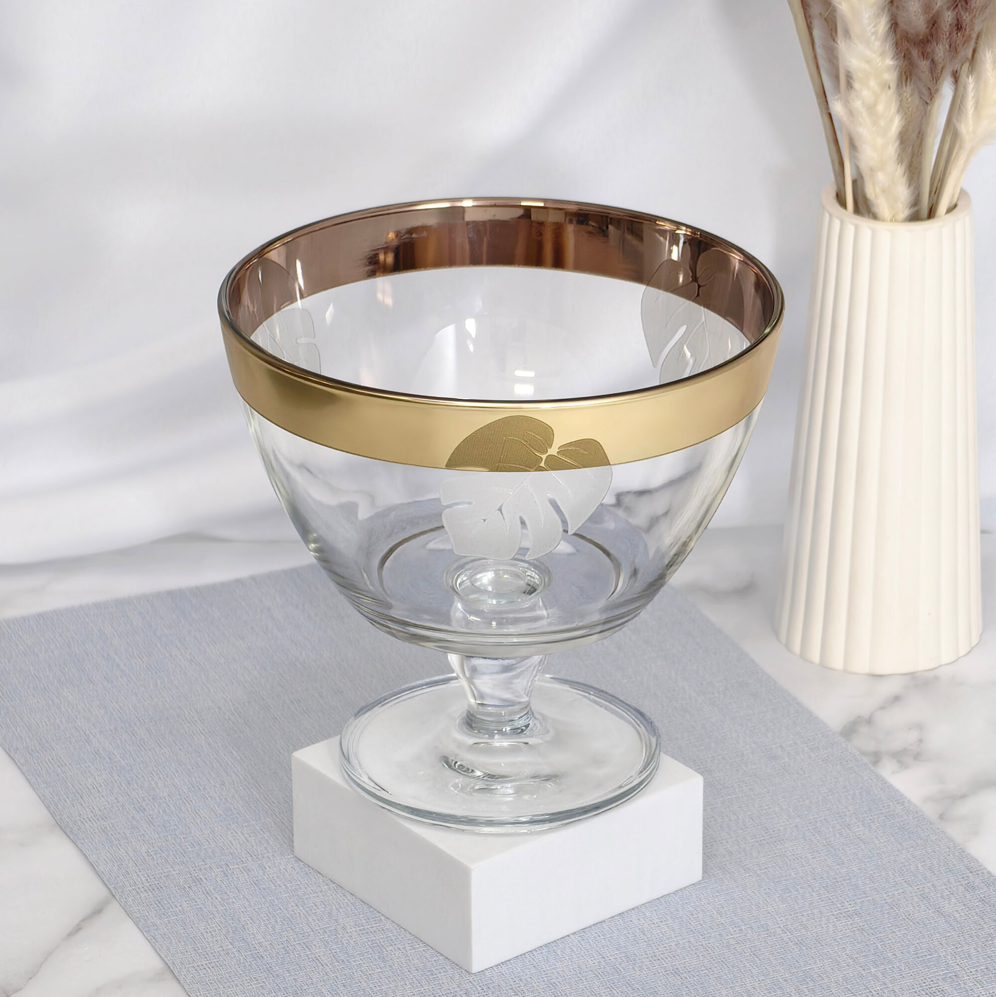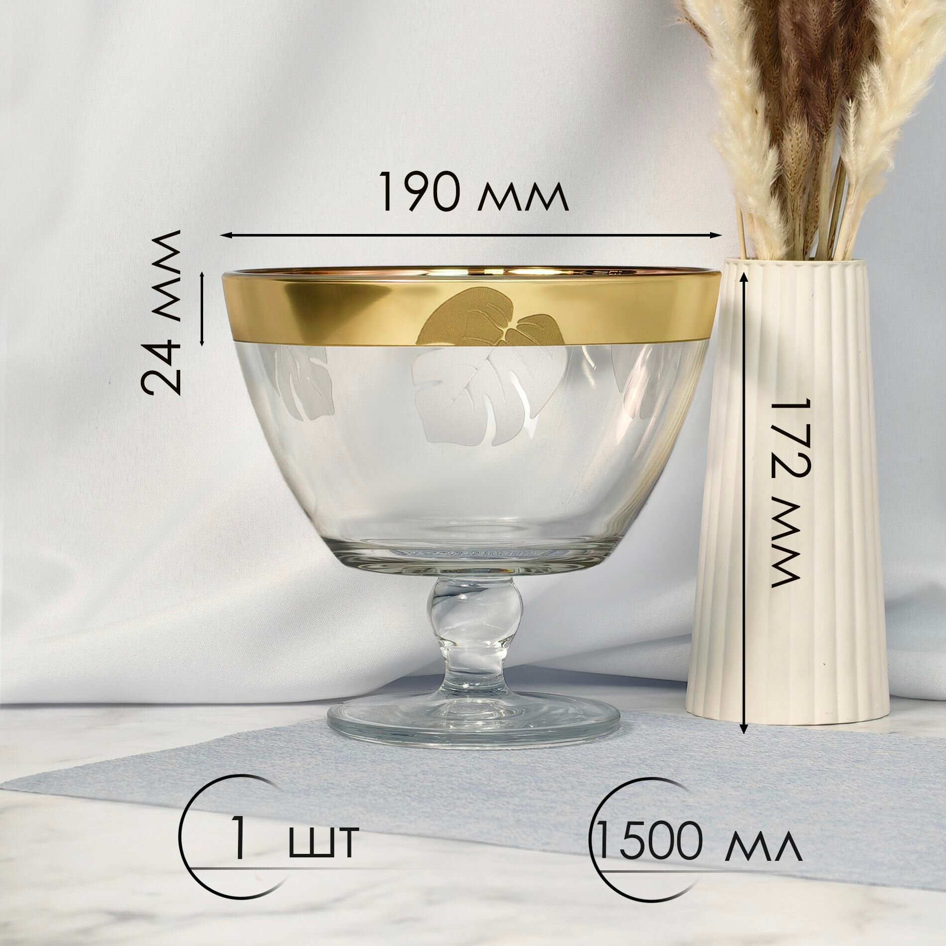 Ваза стеклянная на ножке для фруктов / конфет с алмазной гравировкой PROMSIZ монстера, D 160 мм, 1 шт.