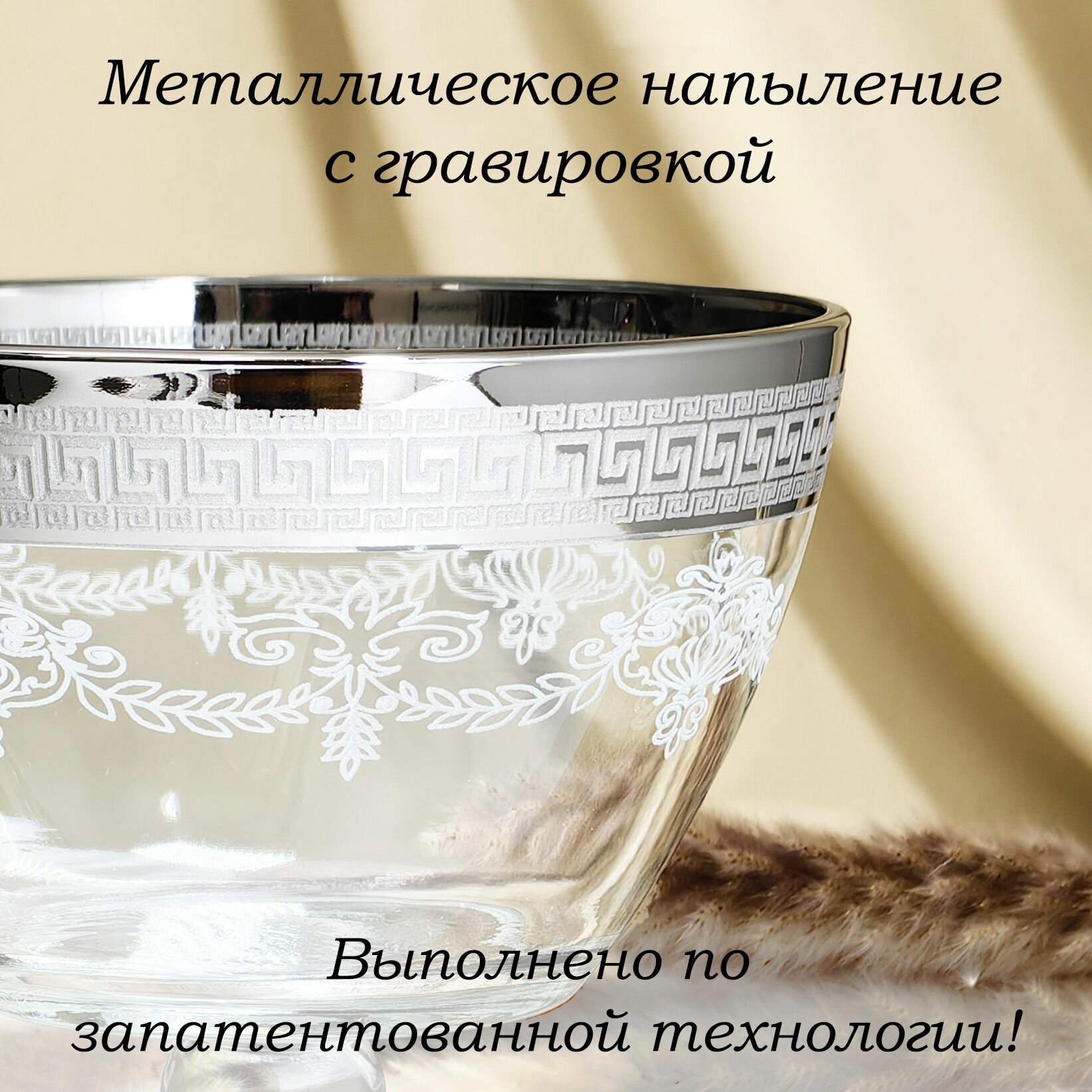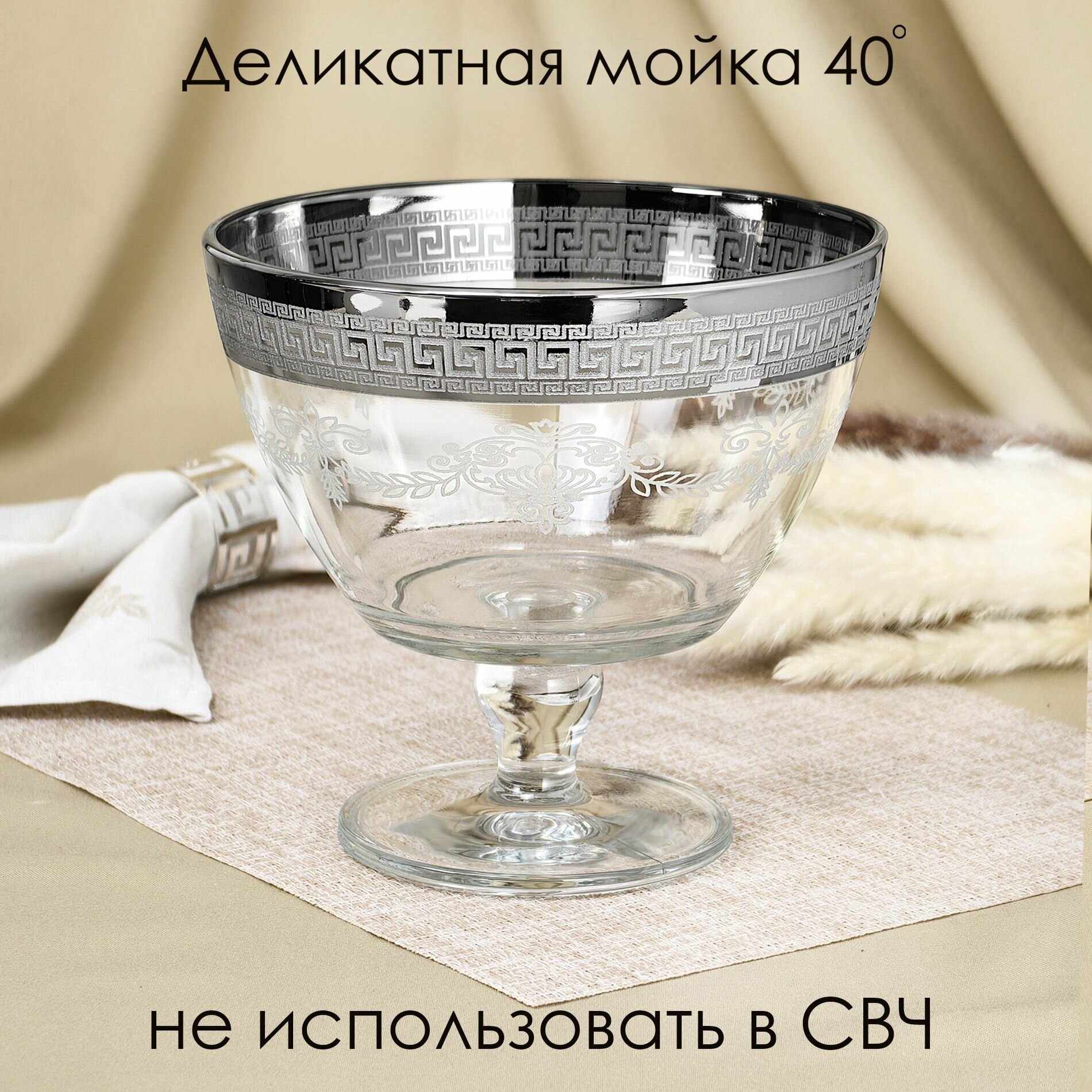 Ваза стеклянная на ножке для конфет в подарочной упаковке с алмазной гравировкой PROMSIZ греческий узор, 500 мл, 1 шт.