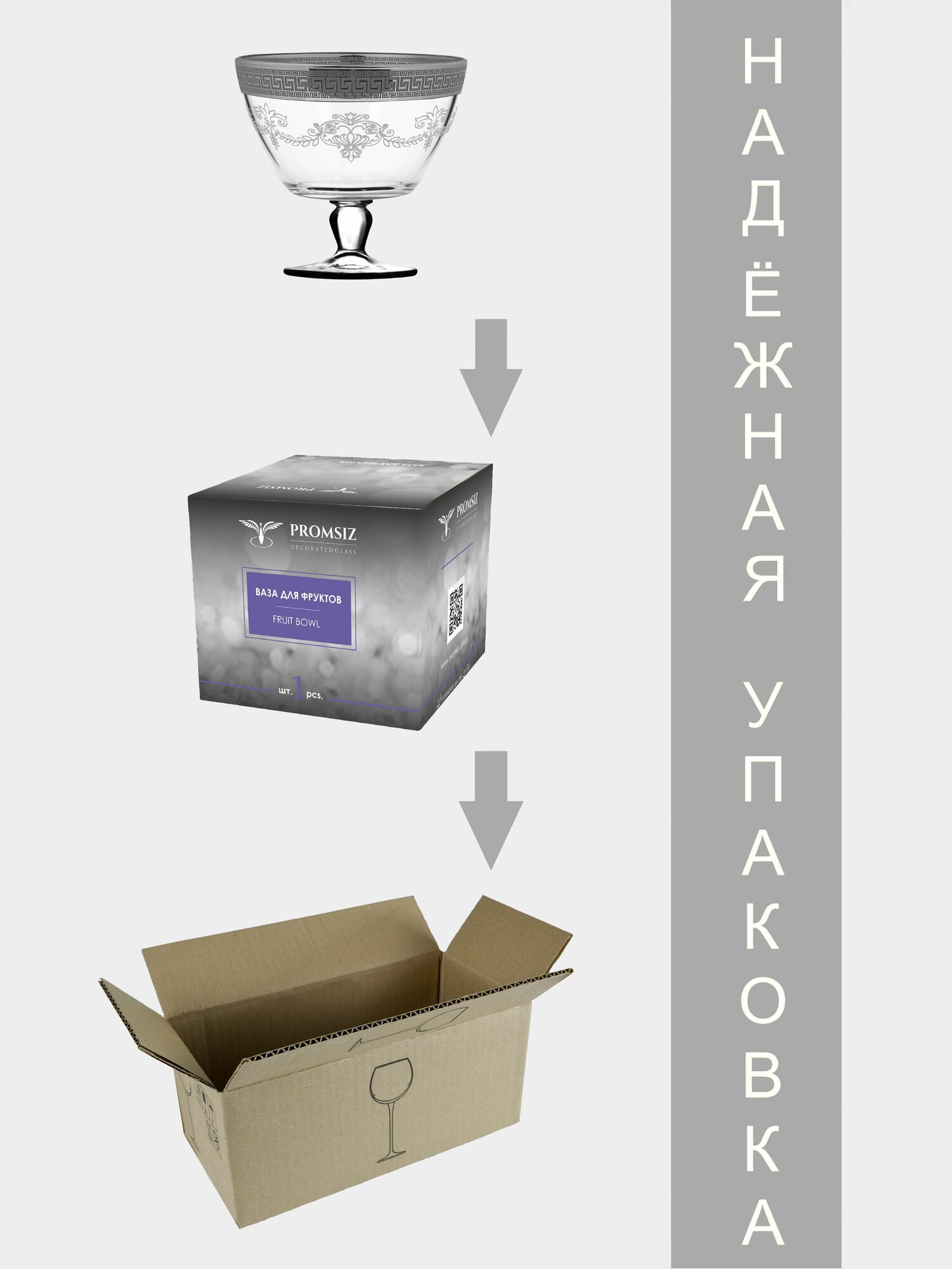 Ваза стеклянная на ножке для фруктов в подарочной упаковке с алмазной гравировкой PROMSIZ барокко, 500 мл, 1 шт.