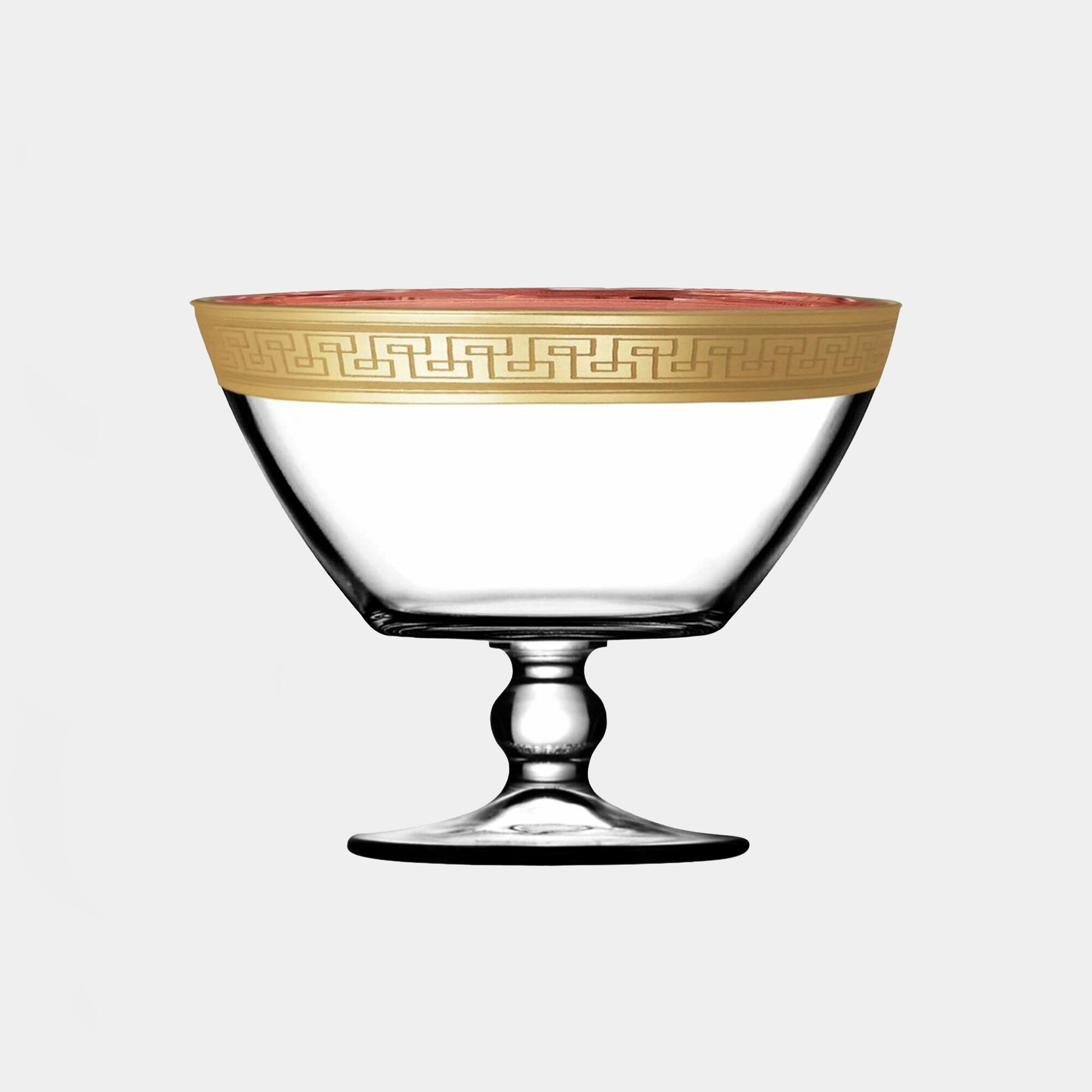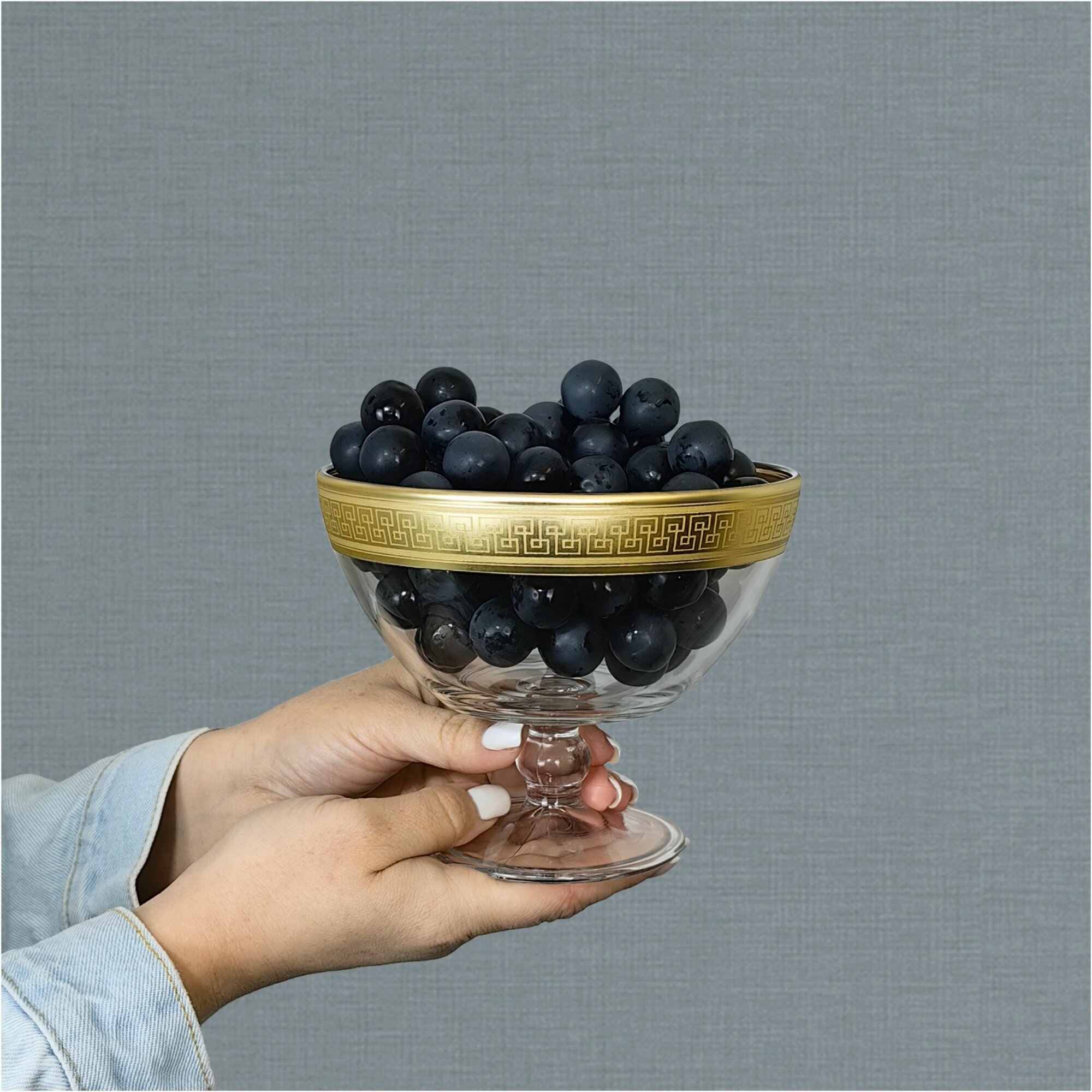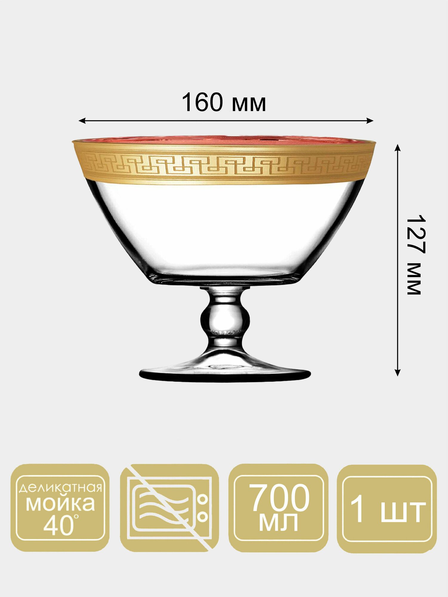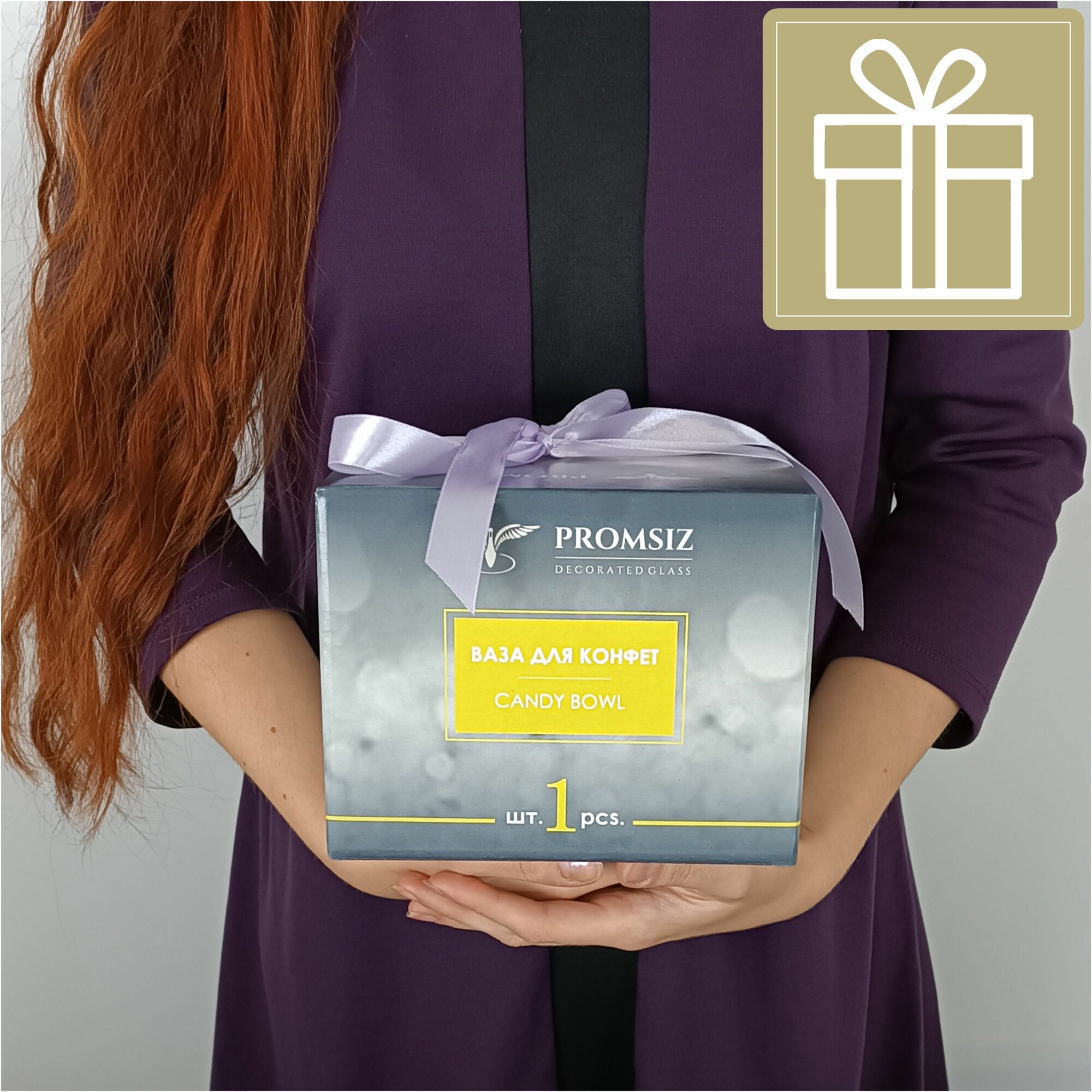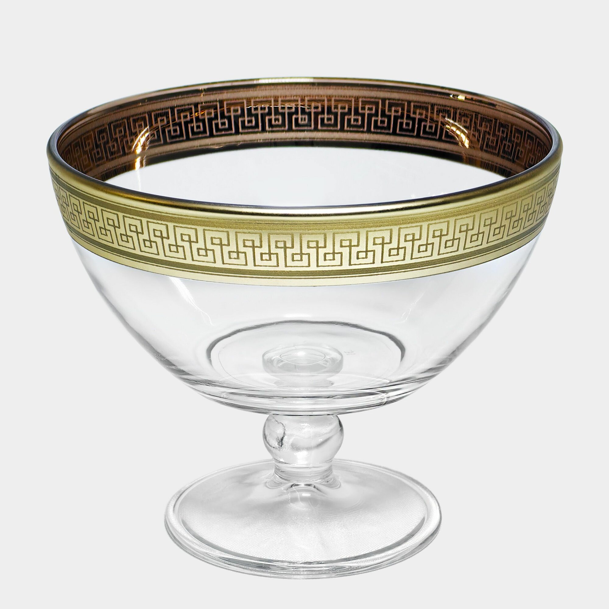 Ваза стеклянная на ножке для конфет в подарочной упаковке с алмазной гравировкой PROMSIZ греческий узор, 500 мл, 1 шт.