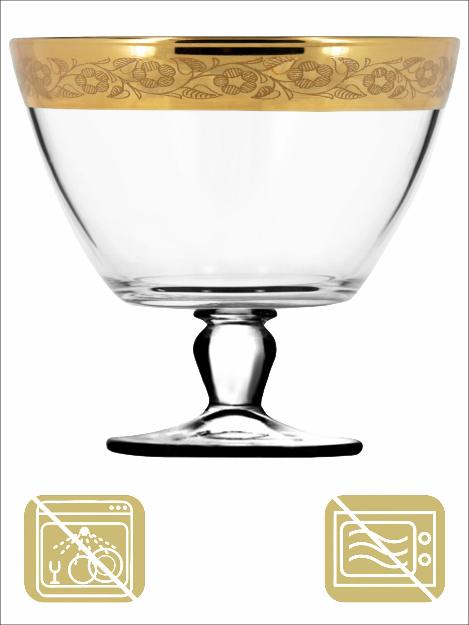 Ваза стеклянная на ножке для фруктов в подарочной упаковке с алмазной гравировкой PROMSIZ барокко, 500 мл, 1 шт.