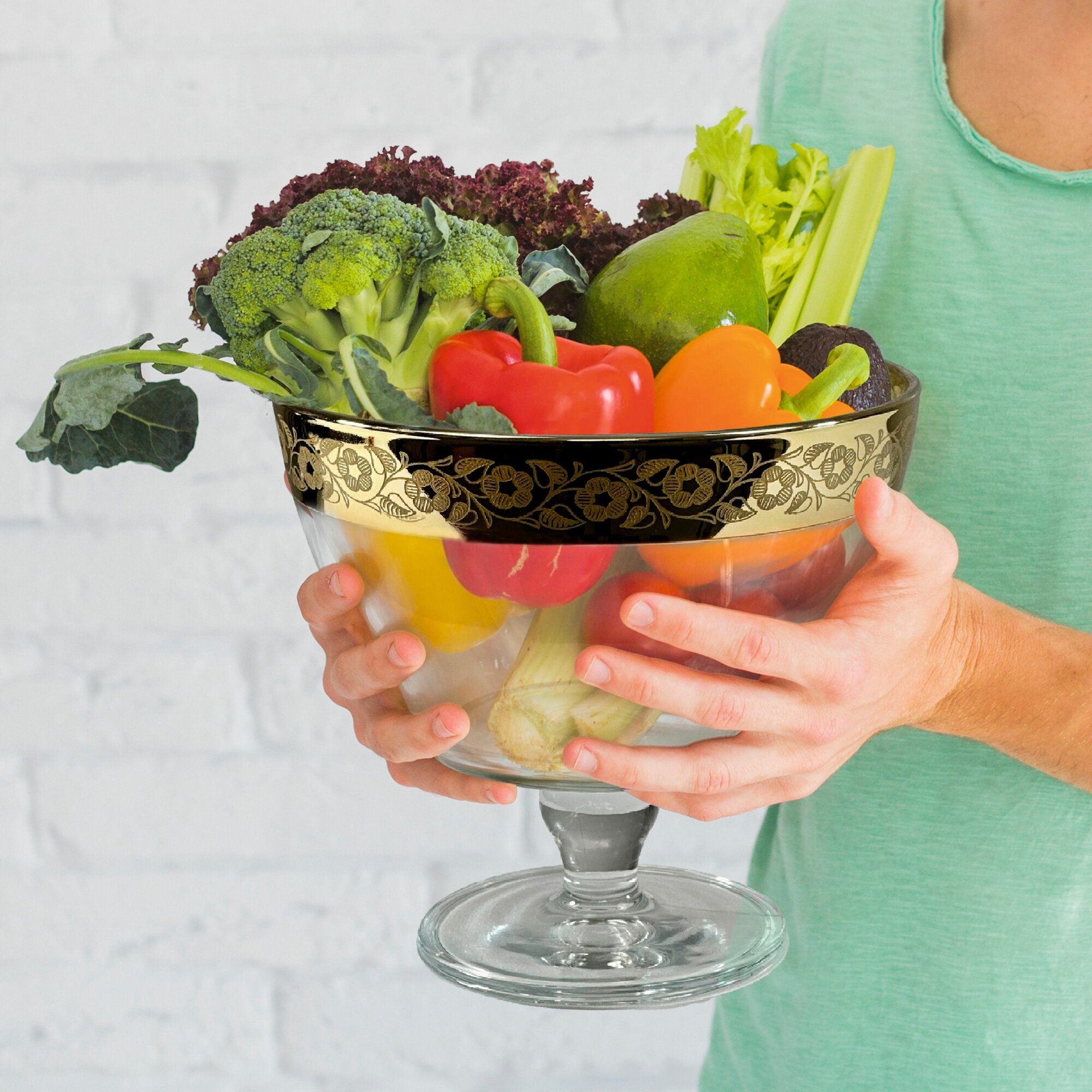 Ваза стеклянная на ножке для фруктов в подарочной упаковке с алмазной гравировкой PROMSIZ барокко, 1500 мл, 1 шт.