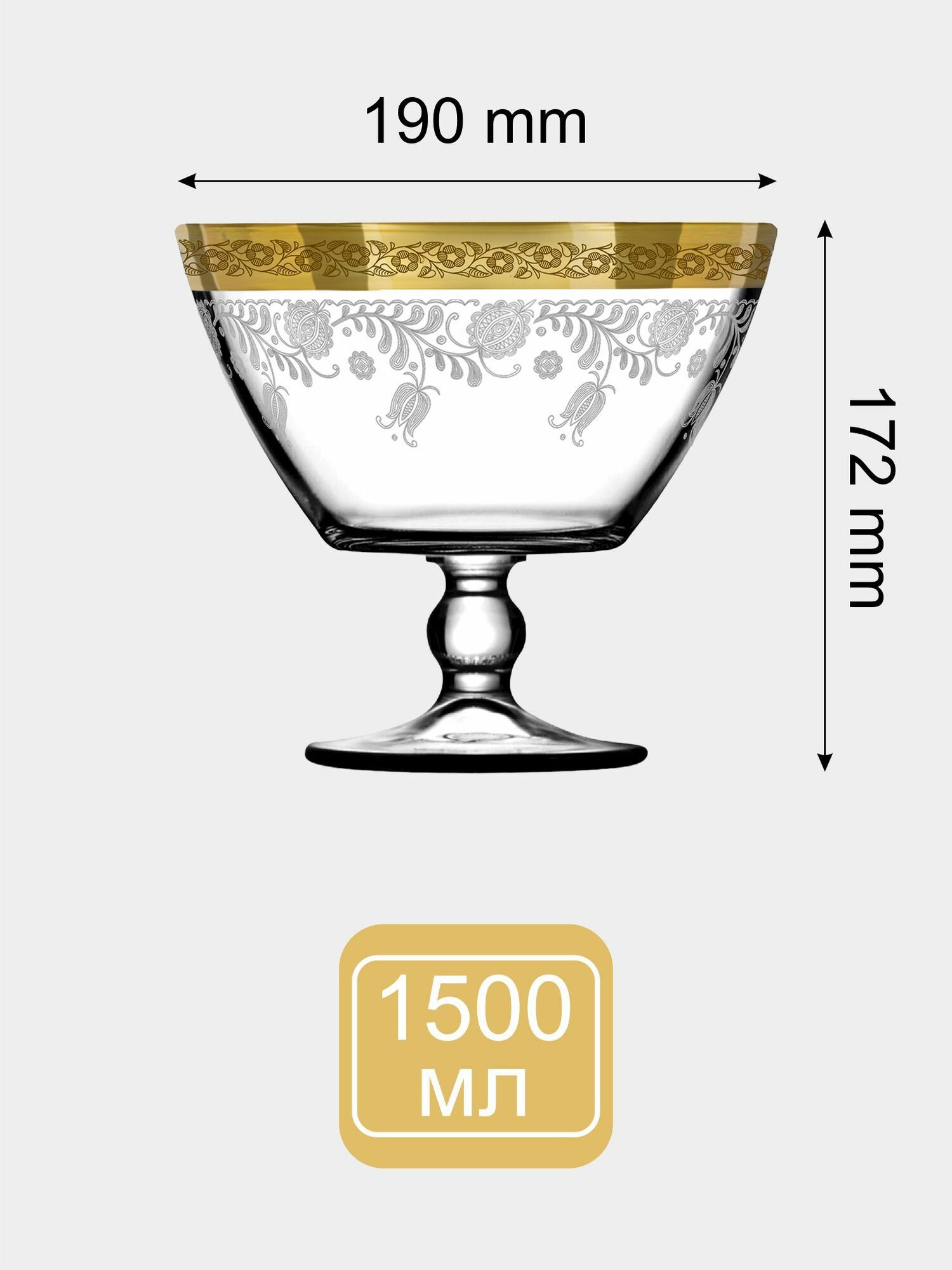 Ваза стеклянная на ножке для фруктов в подарочной упаковке с алмазной гравировкой PROMSIZ барокко, 1500 мл, 1 шт.