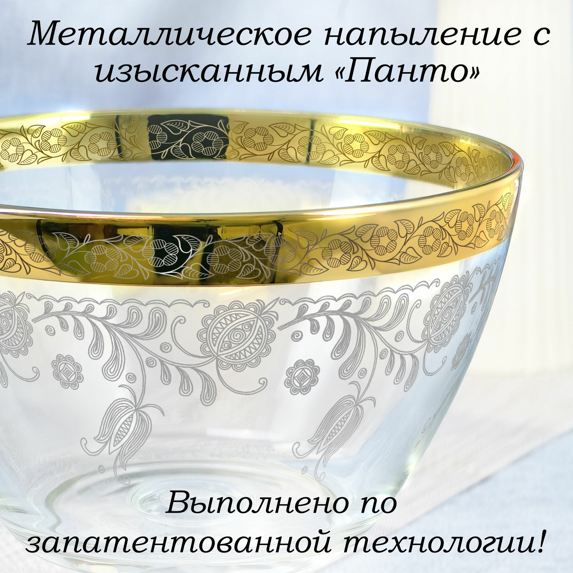 Ваза стеклянная на ножке для конфет в подарочной упаковке с алмазной гравировкой PROMSIZ греческий узор, 500 мл, 1 шт.