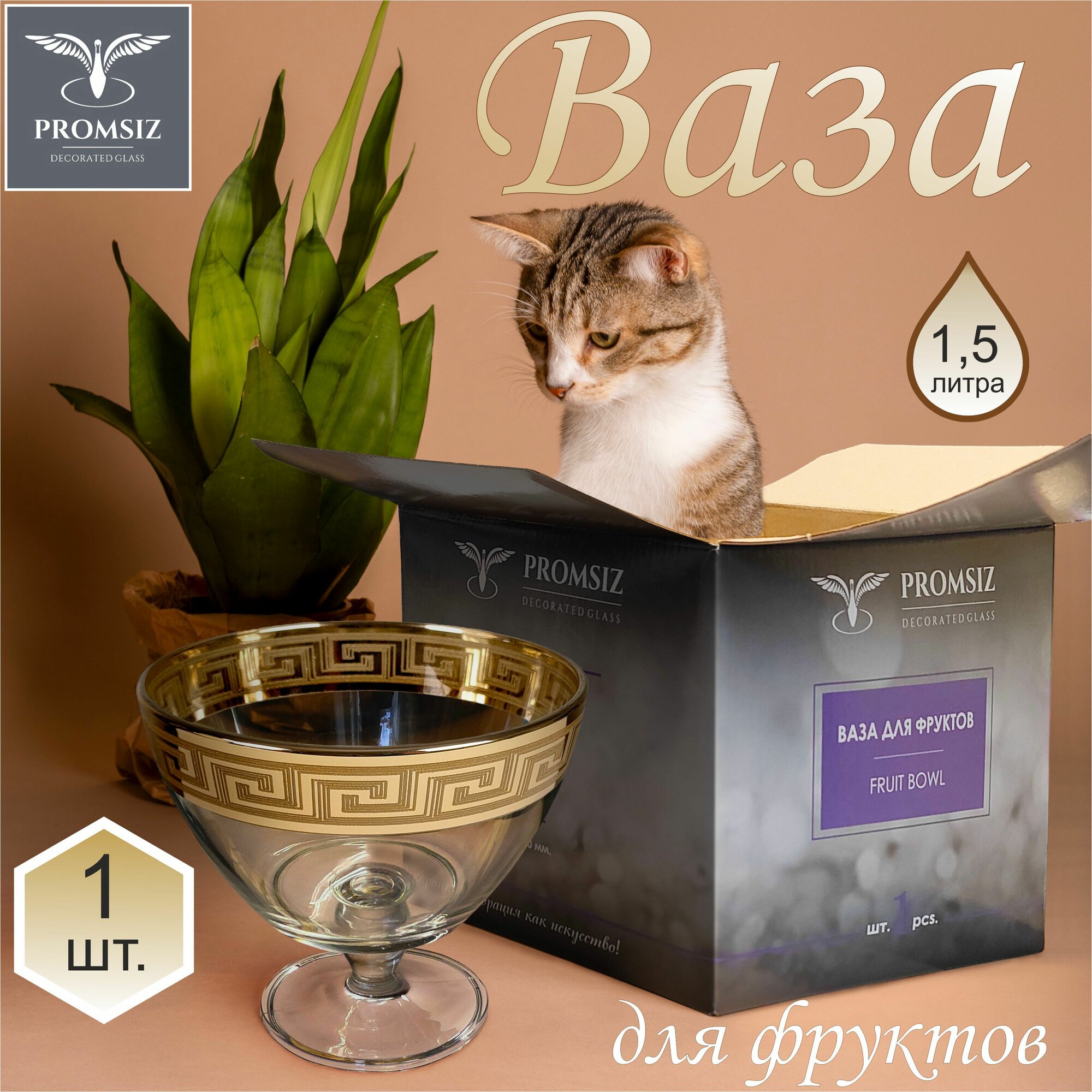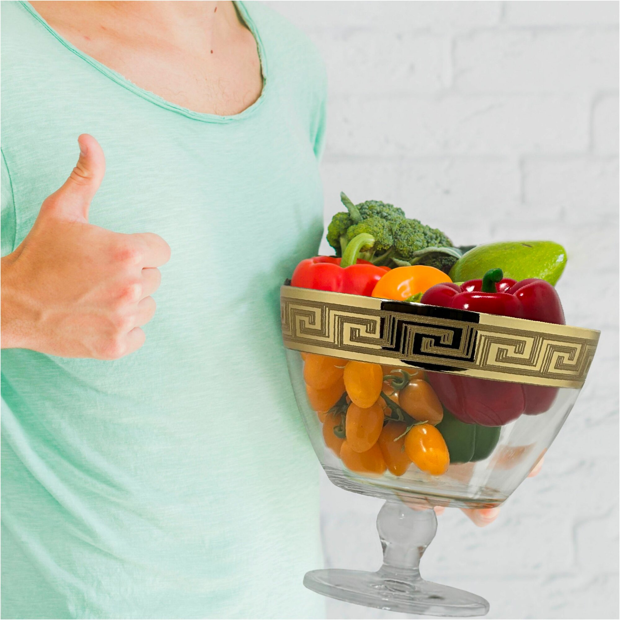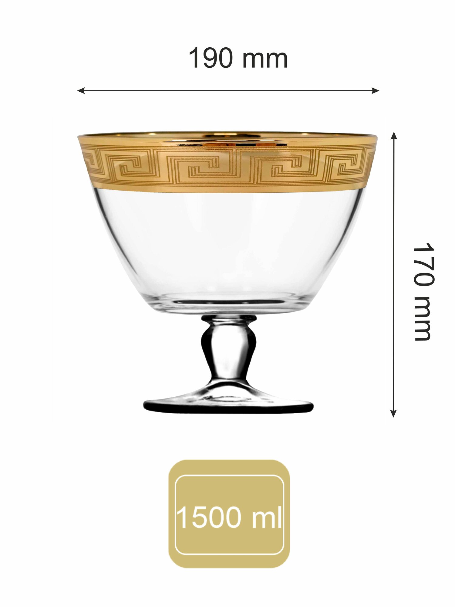 Ваза стеклянная на ножке для фруктов в подарочной упаковке с алмазной гравировкой PROMSIZ греческий узор, 1500 мл,1 шт.
