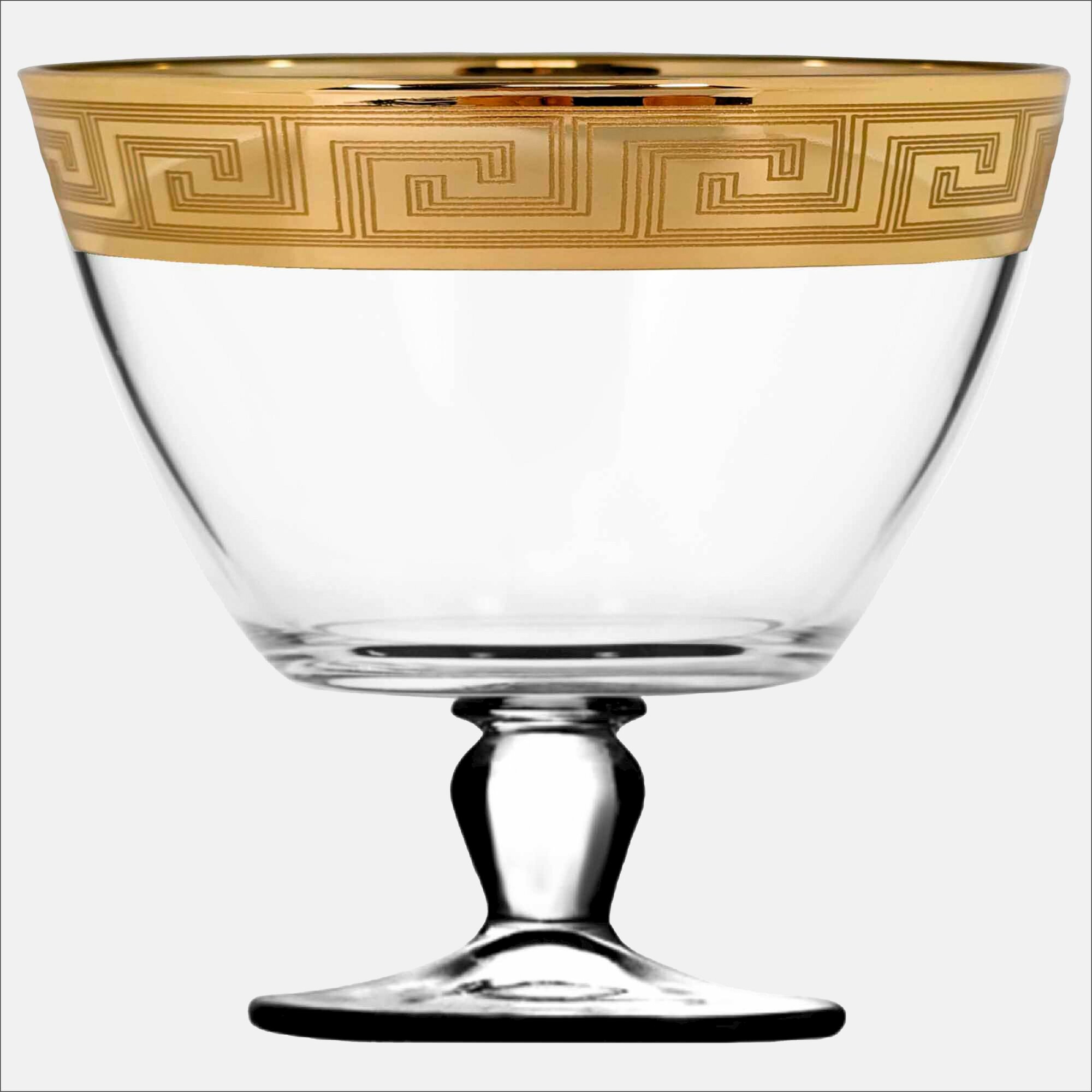 Ваза стеклянная на ножке для конфет в подарочной упаковке с алмазной гравировкой PROMSIZ греческий узор, 500 мл, 1 шт.