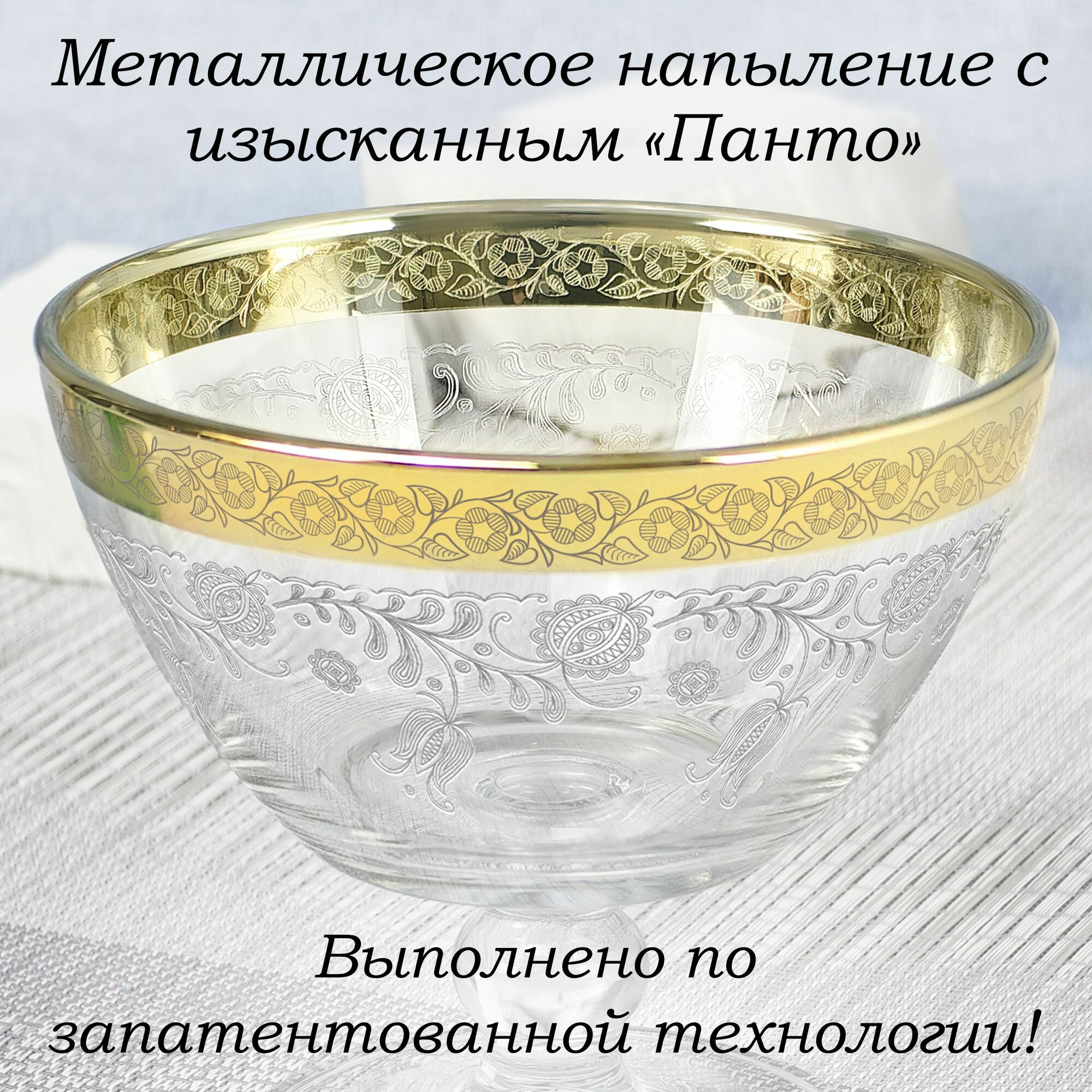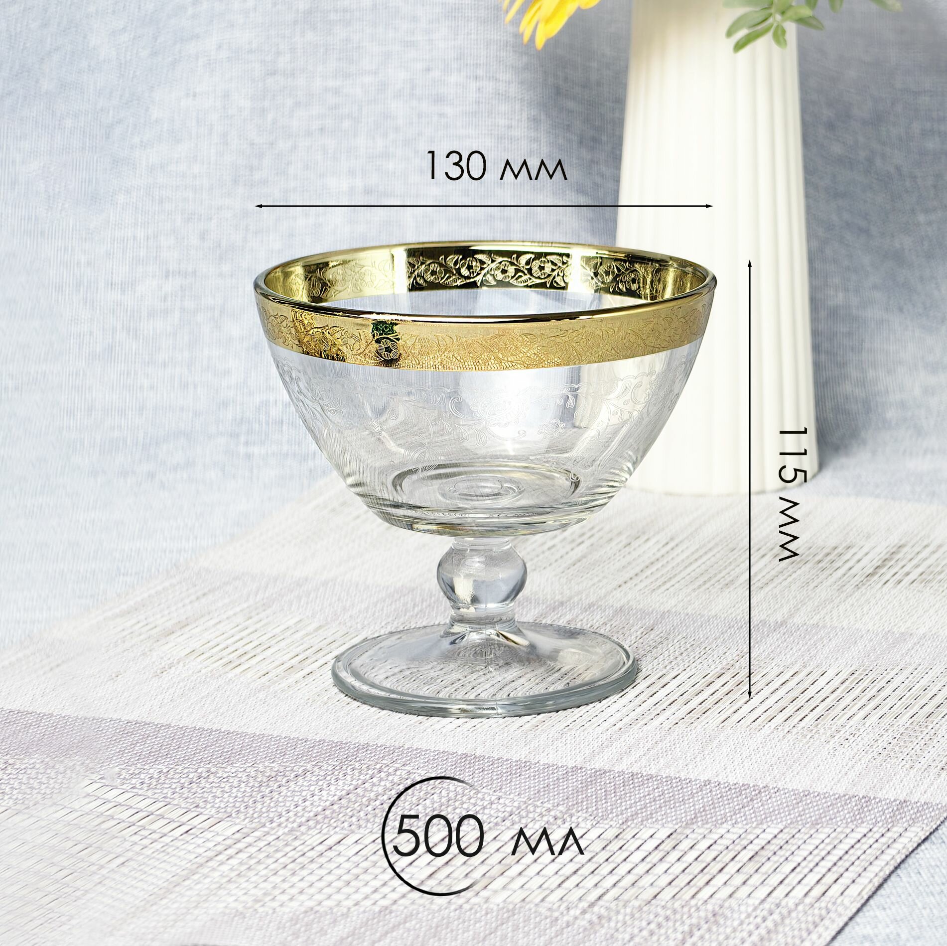 Ваза стеклянная на ножке для фруктов в подарочной упаковке с алмазной гравировкой PROMSIZ барокко, 500 мл, 1 шт.