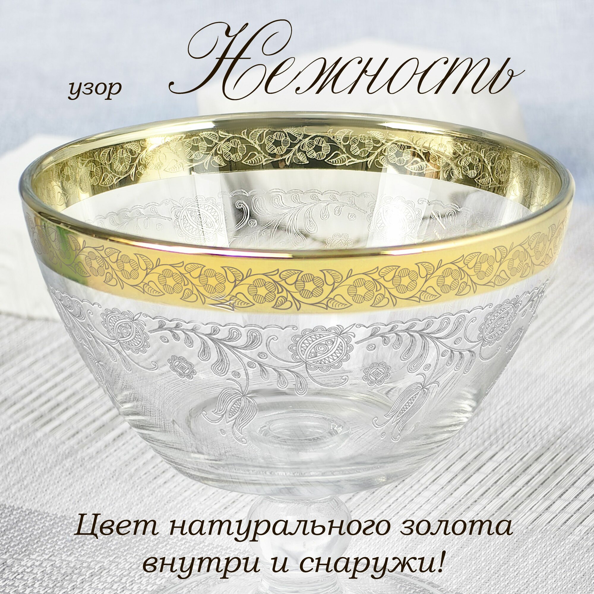 СохранитьВаза стеклянная на ножке для фруктов / конфет с алмазной гравировкой PROMSIZ нежность, d130 мм, 1 шт. интересное: