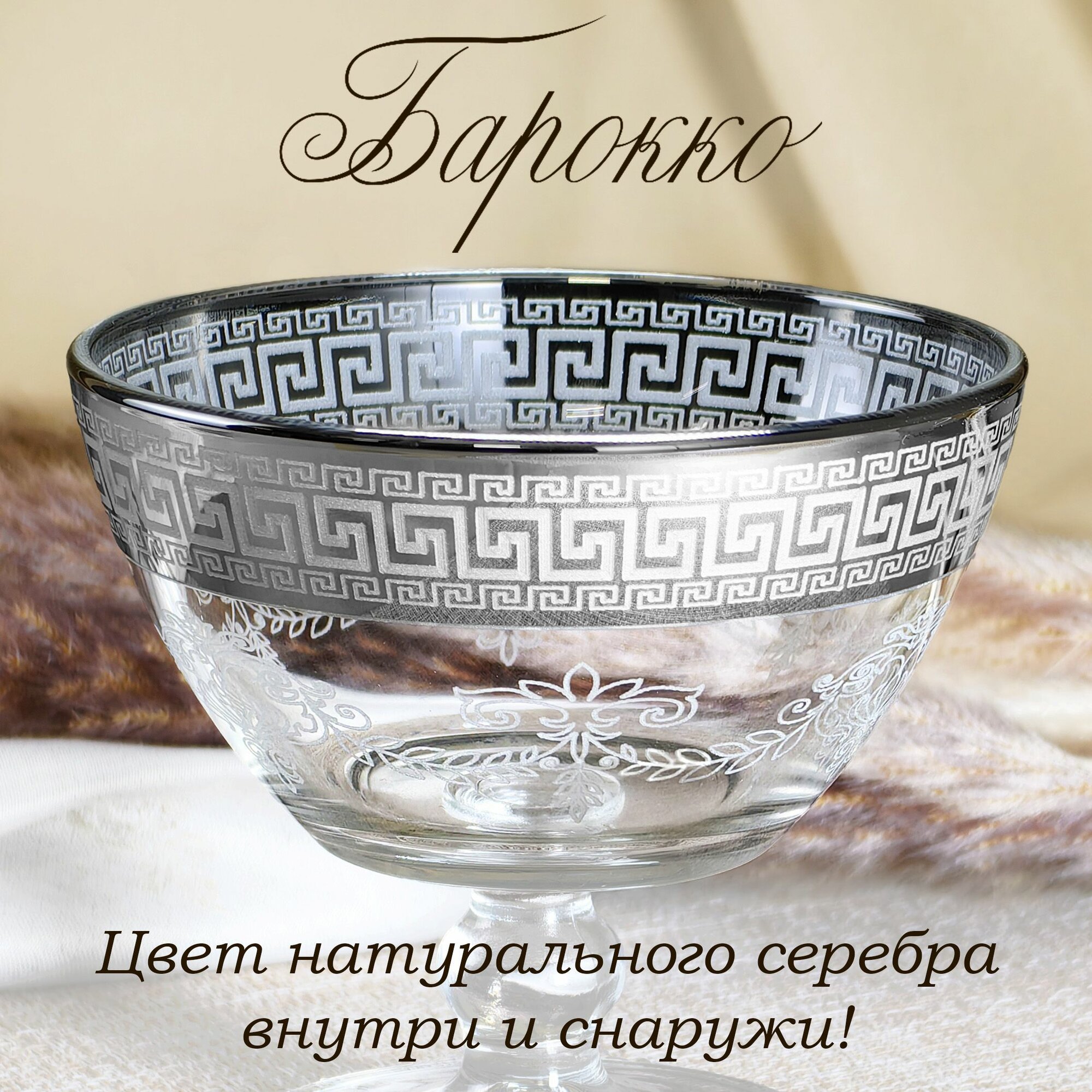 СохранитьВаза стеклянная на ножке для фруктов в подарочной упаковке с алмазной гравировкой PROMSIZ барокко, 500 мл, 1 шт. интересное: