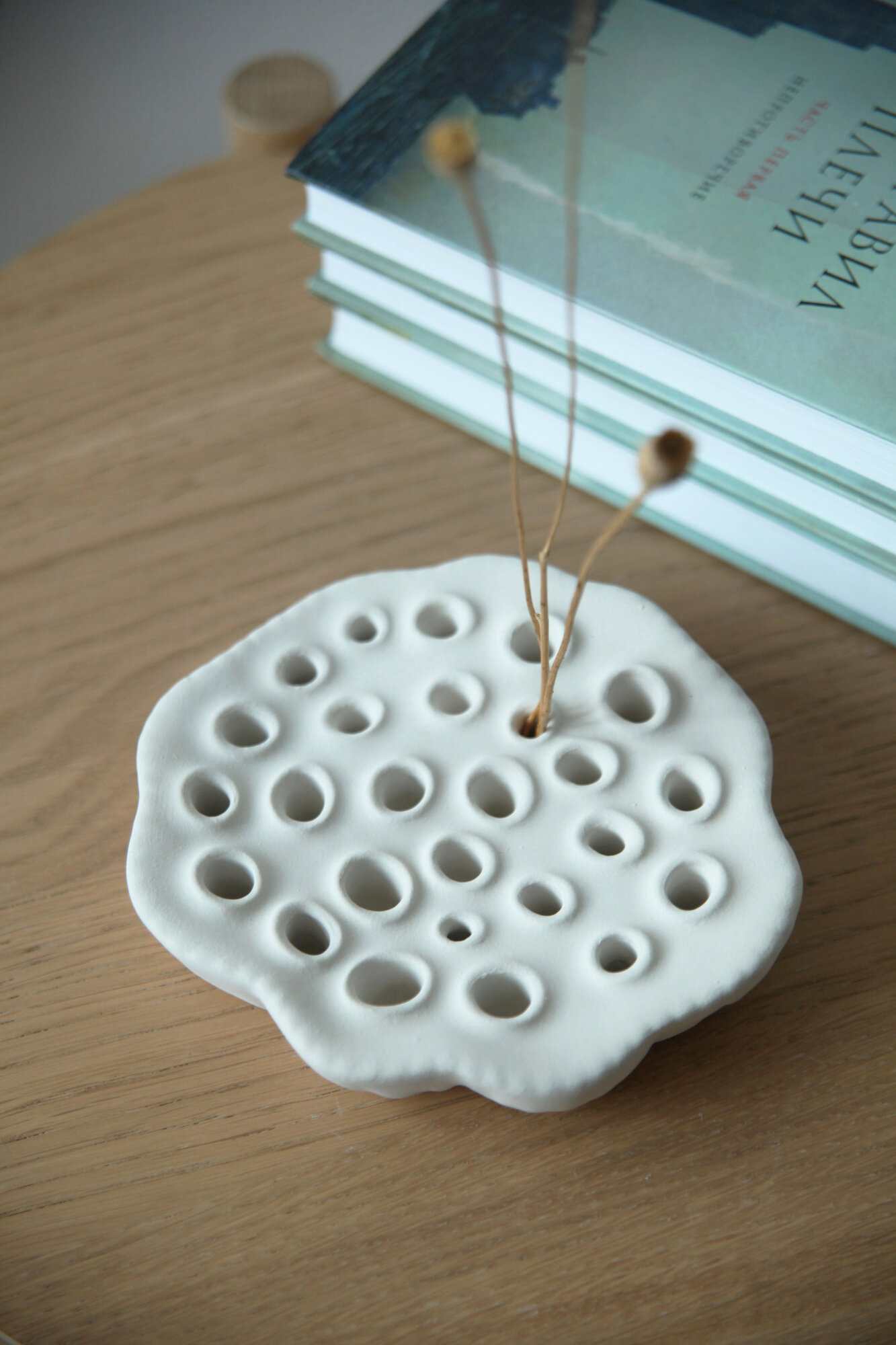 Ваза интерьерная allmoss "Лотос" для сухоцветов, белая, бетон, 17*17*3.5 см интересное: