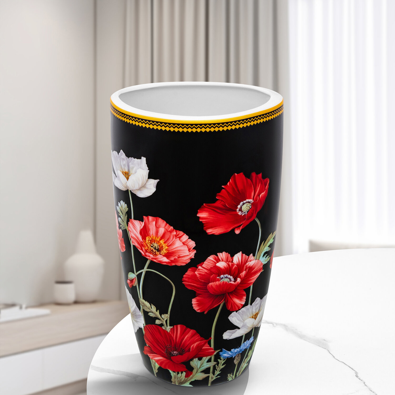 Купить Ваза 1,5 л Elan Gallery "Маки на черном", 12,5х9,5х22 см, NEW BONE CHINA
