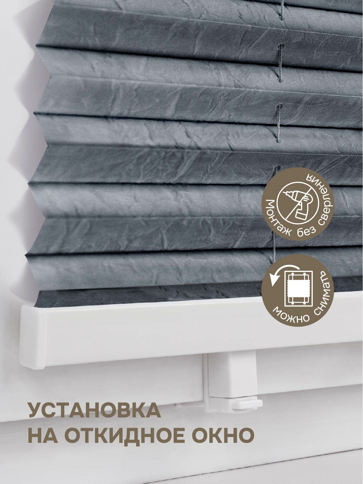 Плиссе натяжного типа Эскар Crush, 68х170 см, ткань, цвет серый интересное: