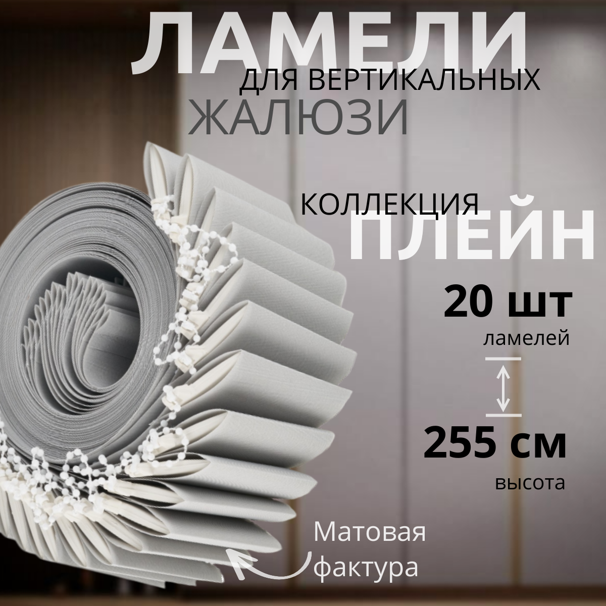 СохранитьЛамели для вертикальных жалюзи серого цвета 20 штук высотой 255 см из ткани Плейн премиум. Ламели без карниза интересное: