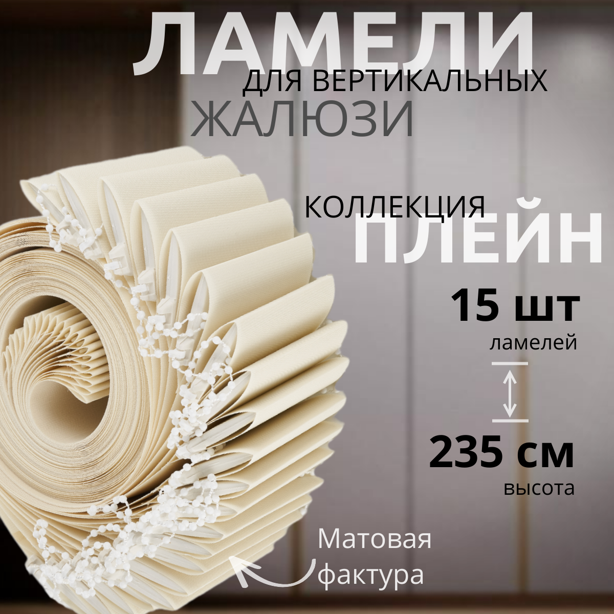 Ламели для вертикальных жалюзи слоновая кость 15 штук высотой 230 см, ткань Плейн Премиум, карниз приобретается отдельно