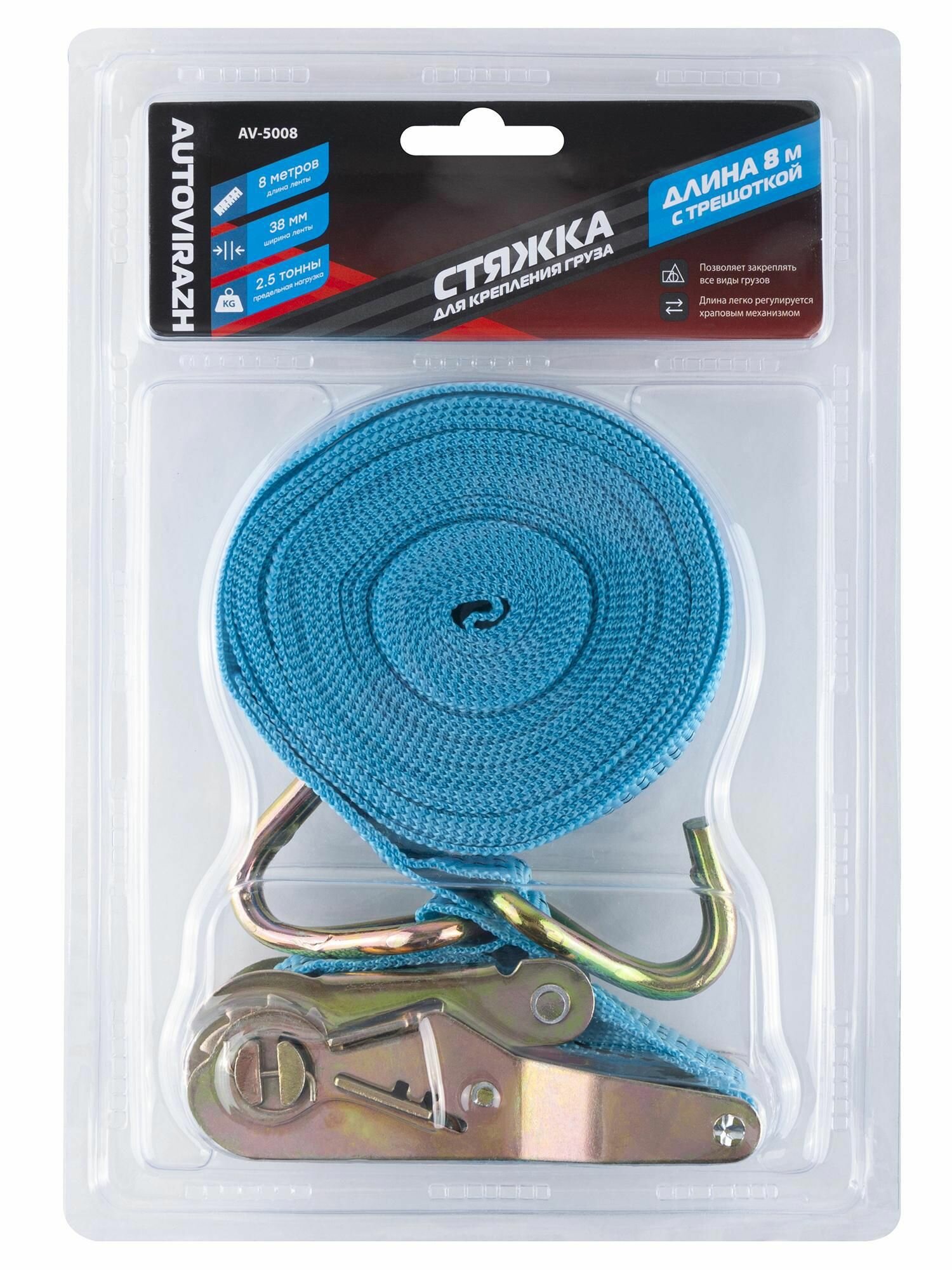 Стяжка для груза 3,8 см * 8 м /в блистере/ 2,5 т AUTOVIRAZH AV-5008