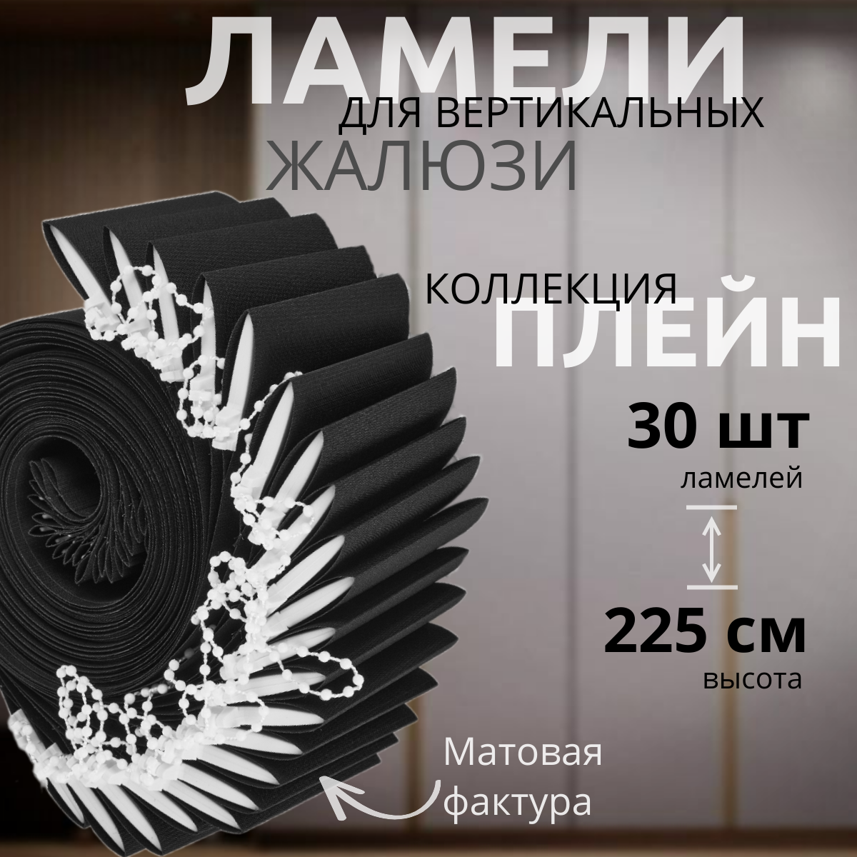 СохранитьЛамели для вертикальных жалюзи черного цвета 30 штук высотой 225 см, ткань Плейн Премиум, карниз приобретается отдельно. интересное: