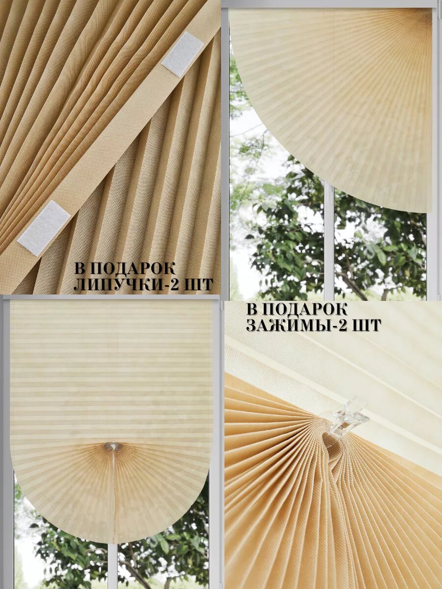 Самоклеящиеся жалюзи плиссе с зажимами и липучками DecorLX, 90x180, бежевые, 1 шт