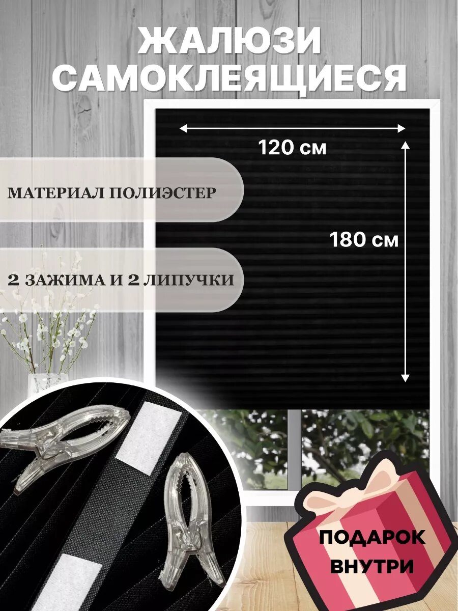 Жалюзи плиссе, чёрный блэкаут, 90х180см, самоклеящиеся, без сверления