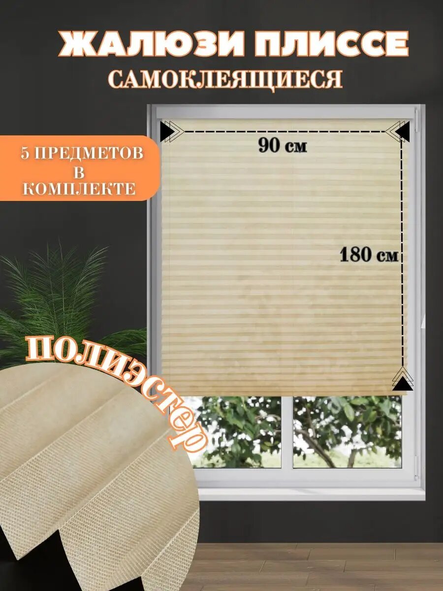 Купить Самоклеящиеся жалюзи плиссе с зажимами и липучками DecorLX, 90x180, бежевые, 1 шт