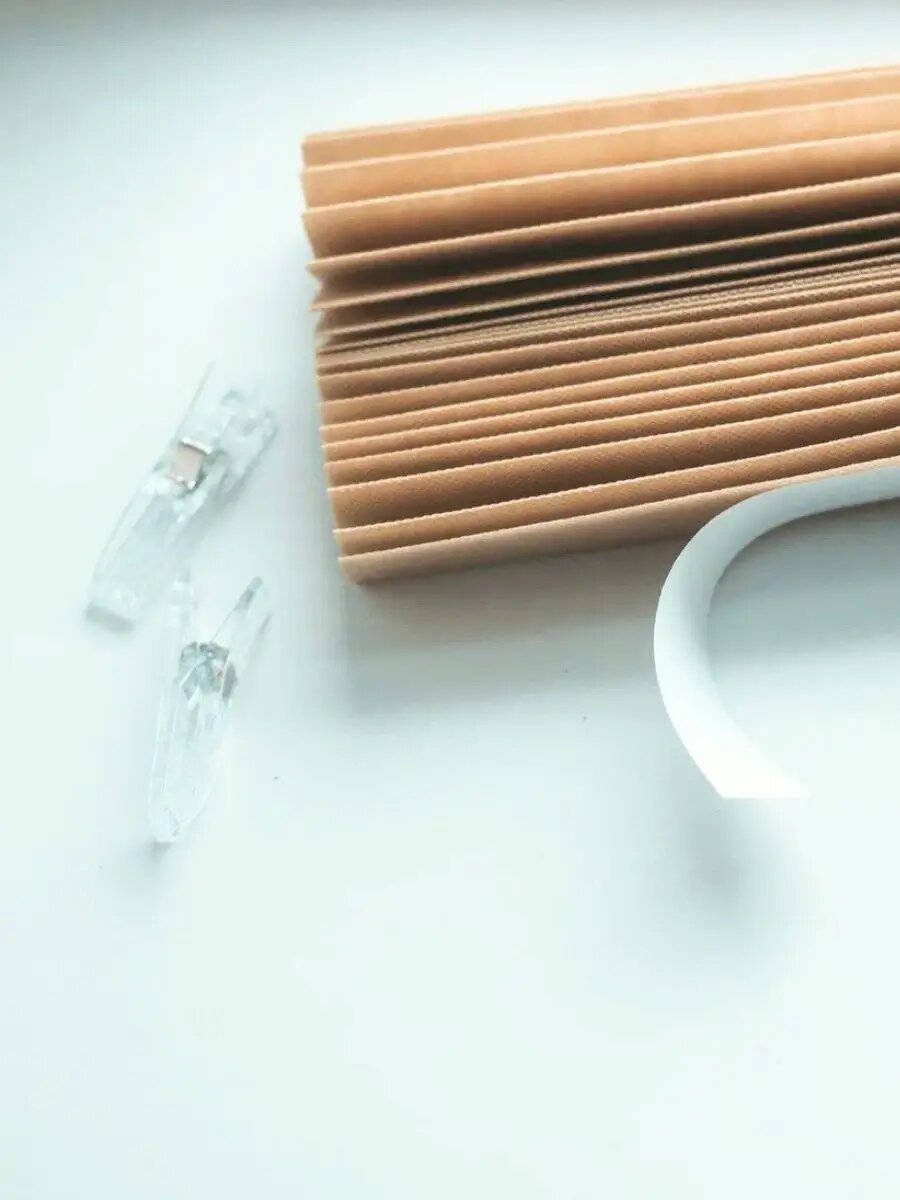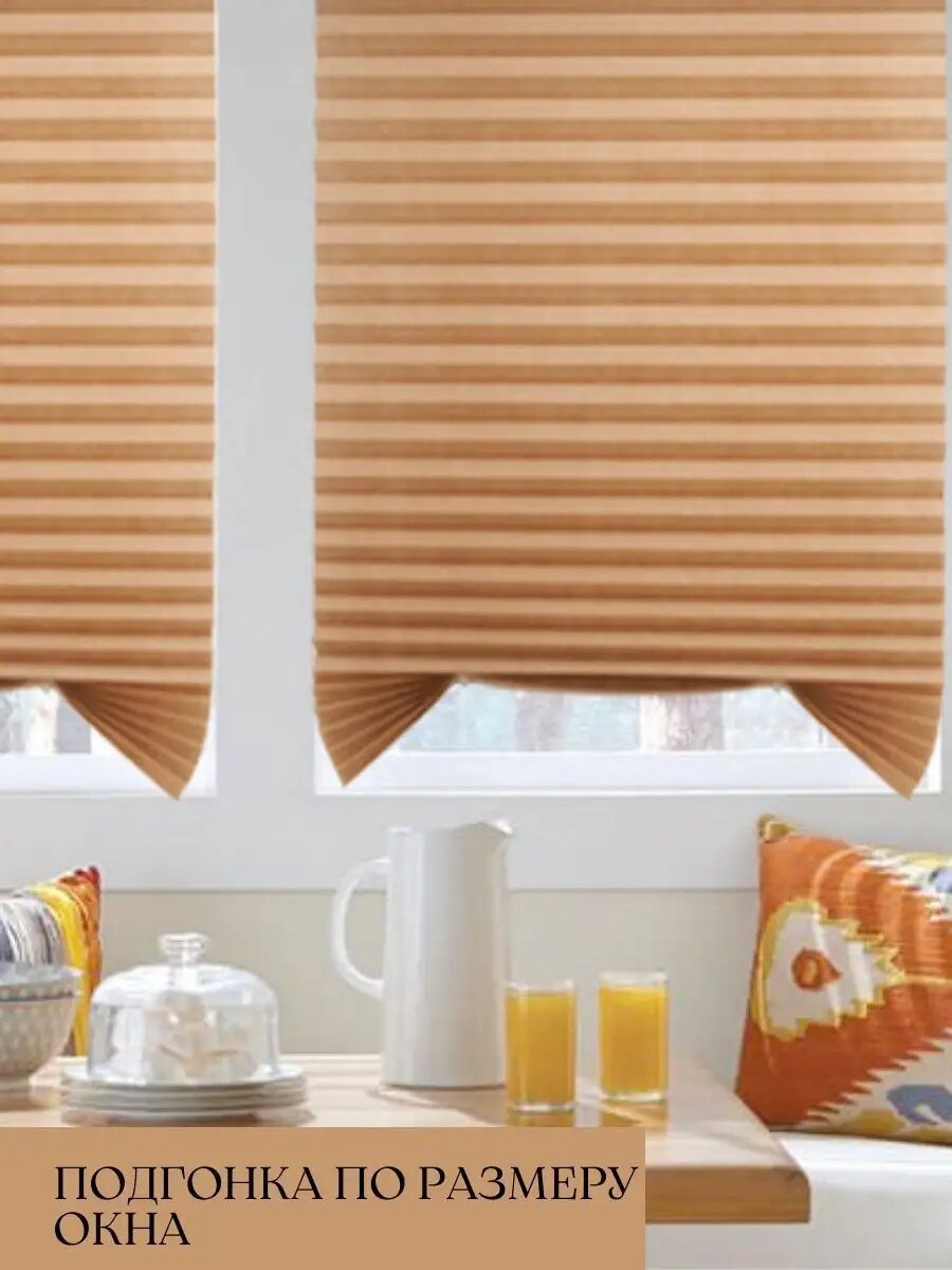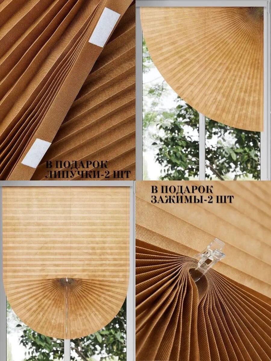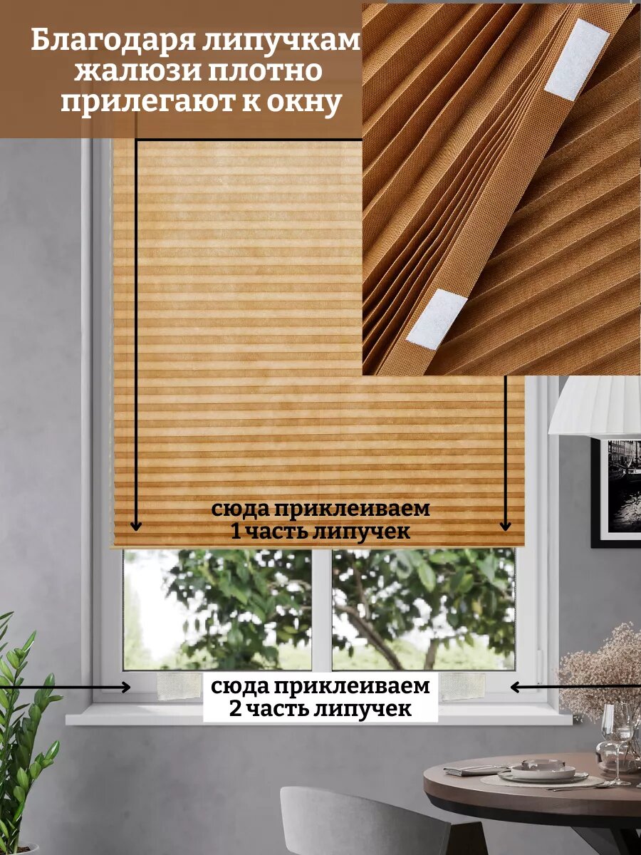 Самоклеящиеся жалюзи плиссе с зажимами и липучками DecorLX, 90x180, бежевые, 1 шт