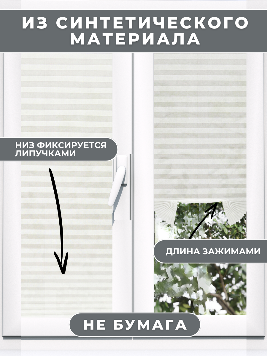 Самоклеящиеся жалюзи плиссе с зажимами и липучками DecorLX, 90x180, бежевые, 1 шт