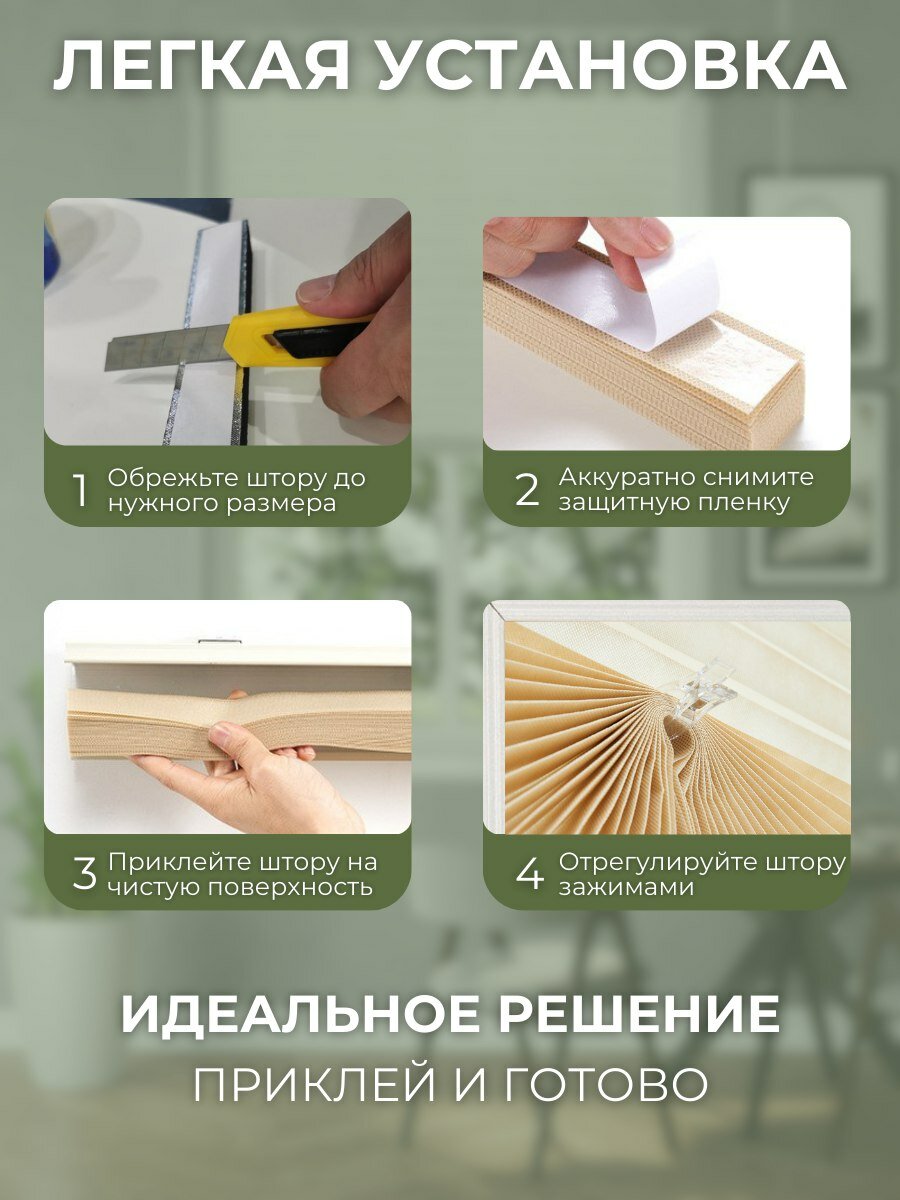 СохранитьЖалюзи DecorLX, плиссе, самоклеящиеся, бежевые, 45x180 см, без сверления, 4 шт интересное: