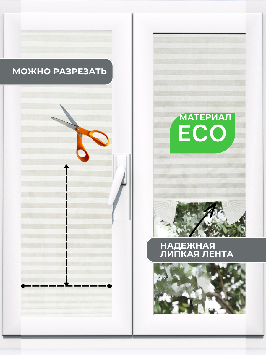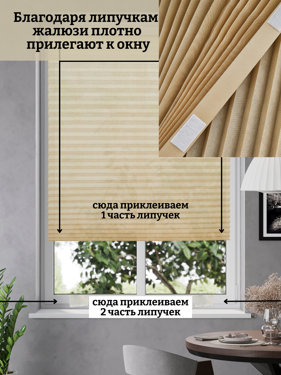Самоклеящиеся жалюзи плиссе с зажимами и липучками DecorLX, 90x180, бежевые, 1 шт