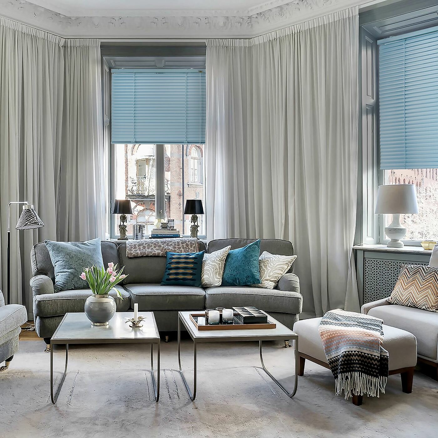 Горизонтальные жалюзи алюминиевые голубые 25мм 180 х 160 см