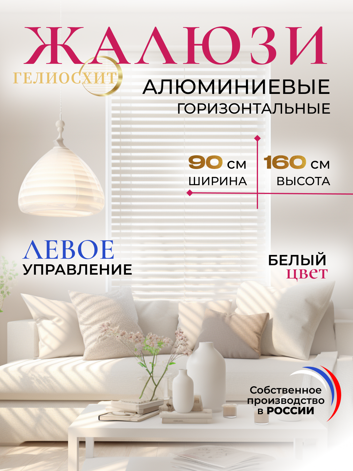 Жалюзи на окна горизонтальные белые Ш 90 см x В 130 см, управление Левое, материал алюминий