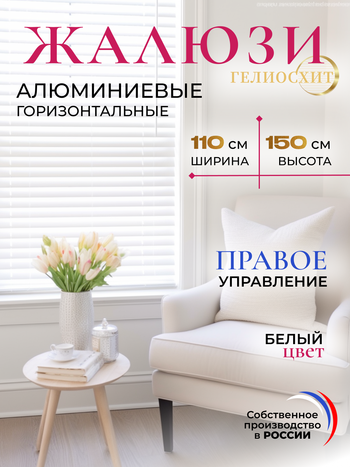 Жалюзи на окна горизонтальные белые Ш 110 см x В 140 см, управление Правое, материал алюминий