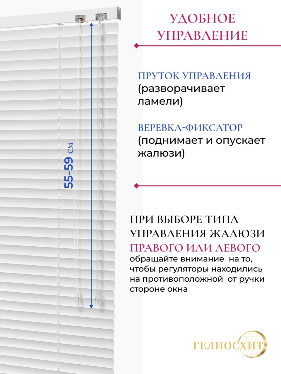 Жалюзи на окна горизонтальные белые Ш 55 см x В 120 см, управление Правое, материал алюминий