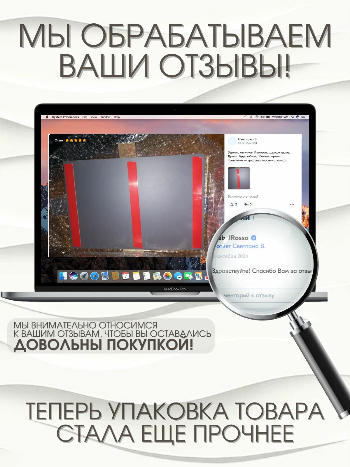 Ниже Вы можете прочитать отзывы на Зеркало MebelRosso, прямоугольное, настольное, без рамы и сверления, ознакомится с подробными характеристиками, посмотреть интересные обзоры и фотографии на Зеркало MebelRosso, прямоугольное, настольное, без рамы и сверления.