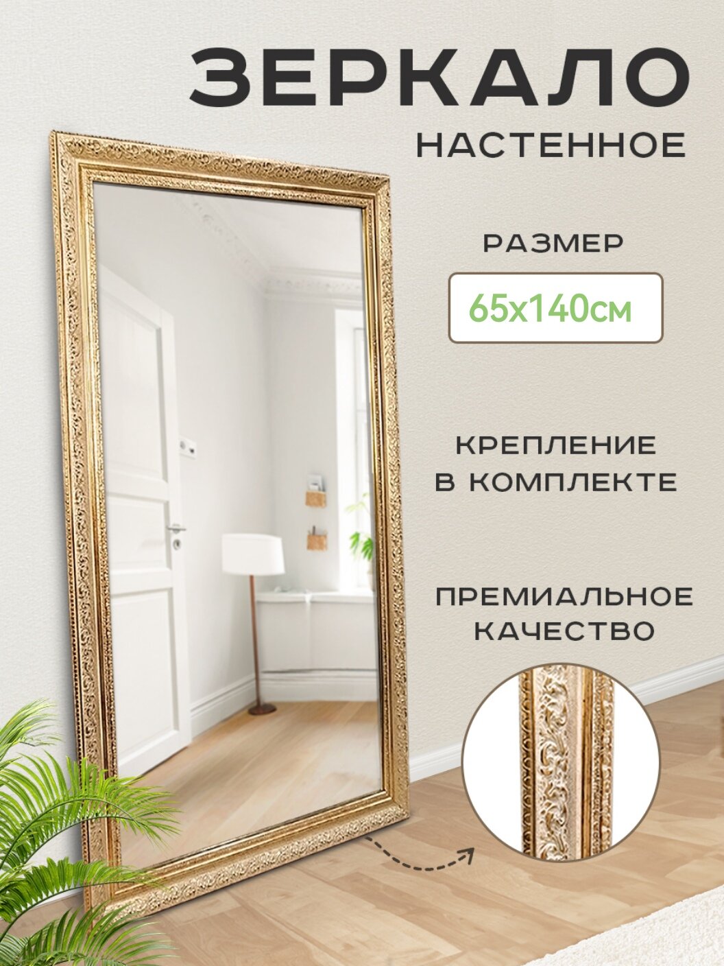 Купить Зеркало настенное интерьерное в полный рост в багетной раме цвет золотой65х140см