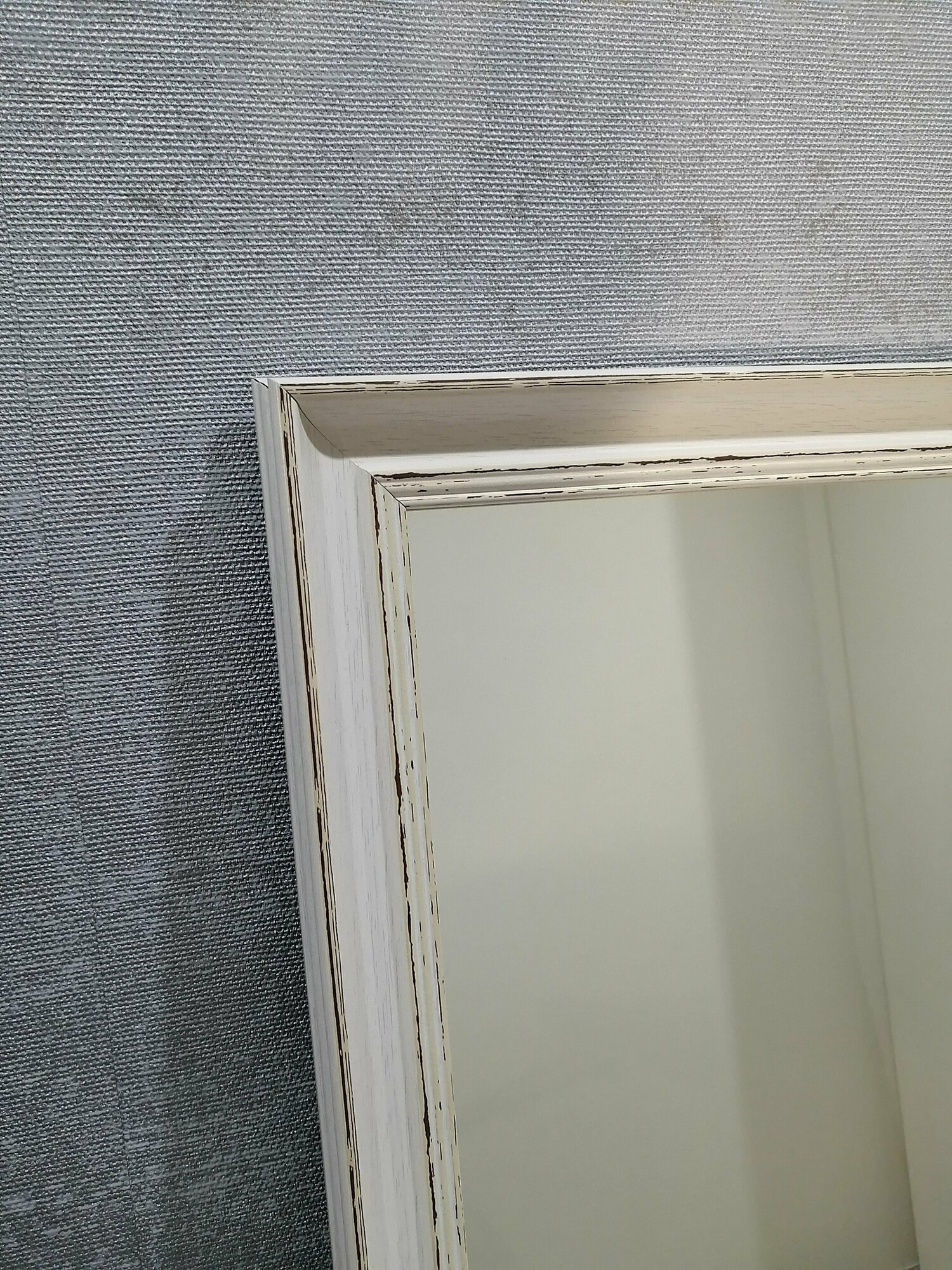 Зеркало настенное интерьерное в белой раме с серебром для спальни прихожей подвесное 75х150