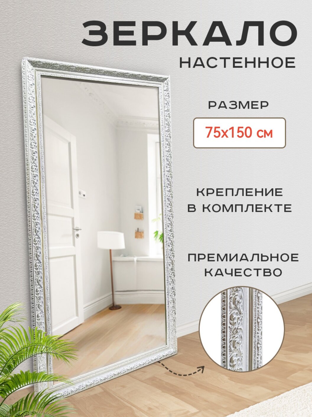 Ниже Вы можете прочитать отзывы на Зеркало настенное интерьерное в белой раме с серебром для спальни прихожей подвесное 75х150, ознакомится с подробными характеристиками, посмотреть интересные обзоры и фотографии на Зеркало настенное интерьерное в белой раме с серебром для спальни прихожей подвесное 75х150.