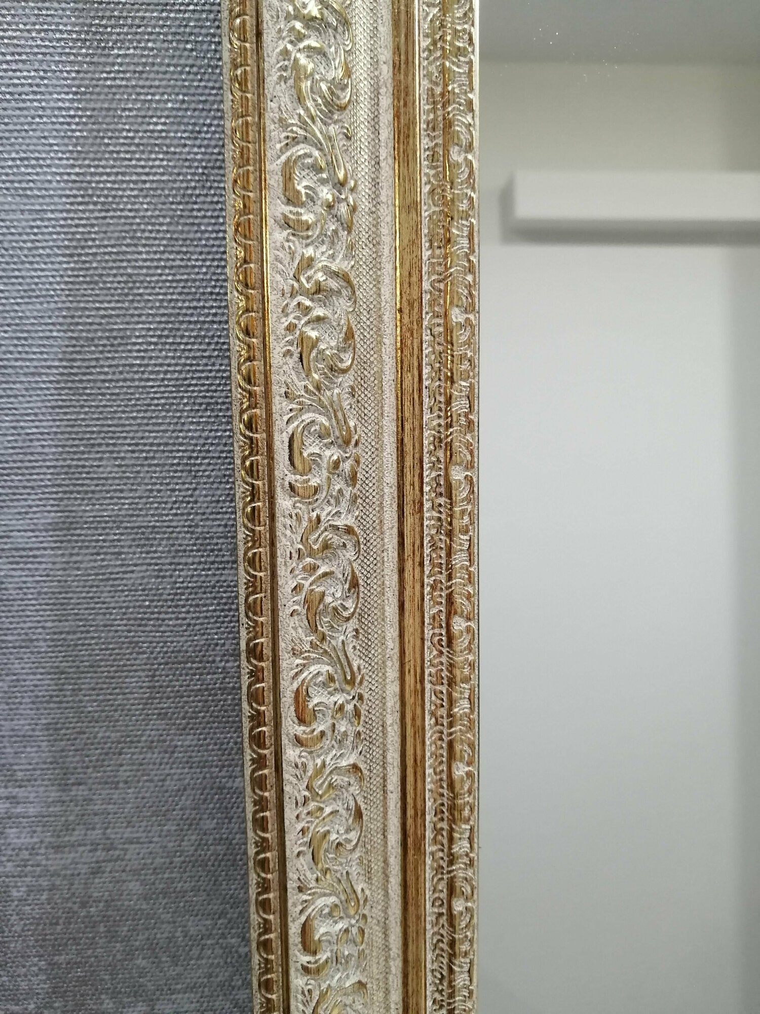 Зеркало настенное интерьерное в белой раме с серебром для спальни прихожей подвесное 75х150