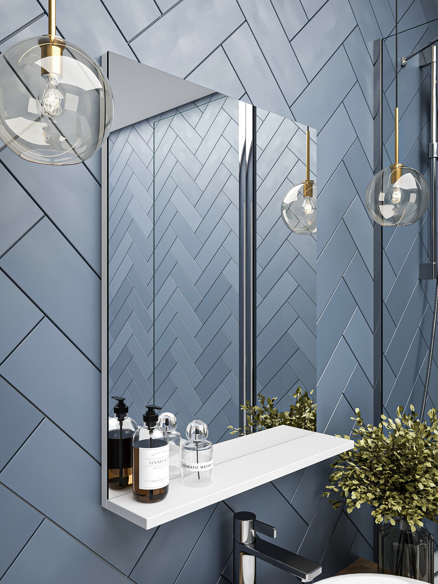 Купить Зеркало с полкой, настенное, влагостойкое, белое, прямоугольная форма, 55x70 см