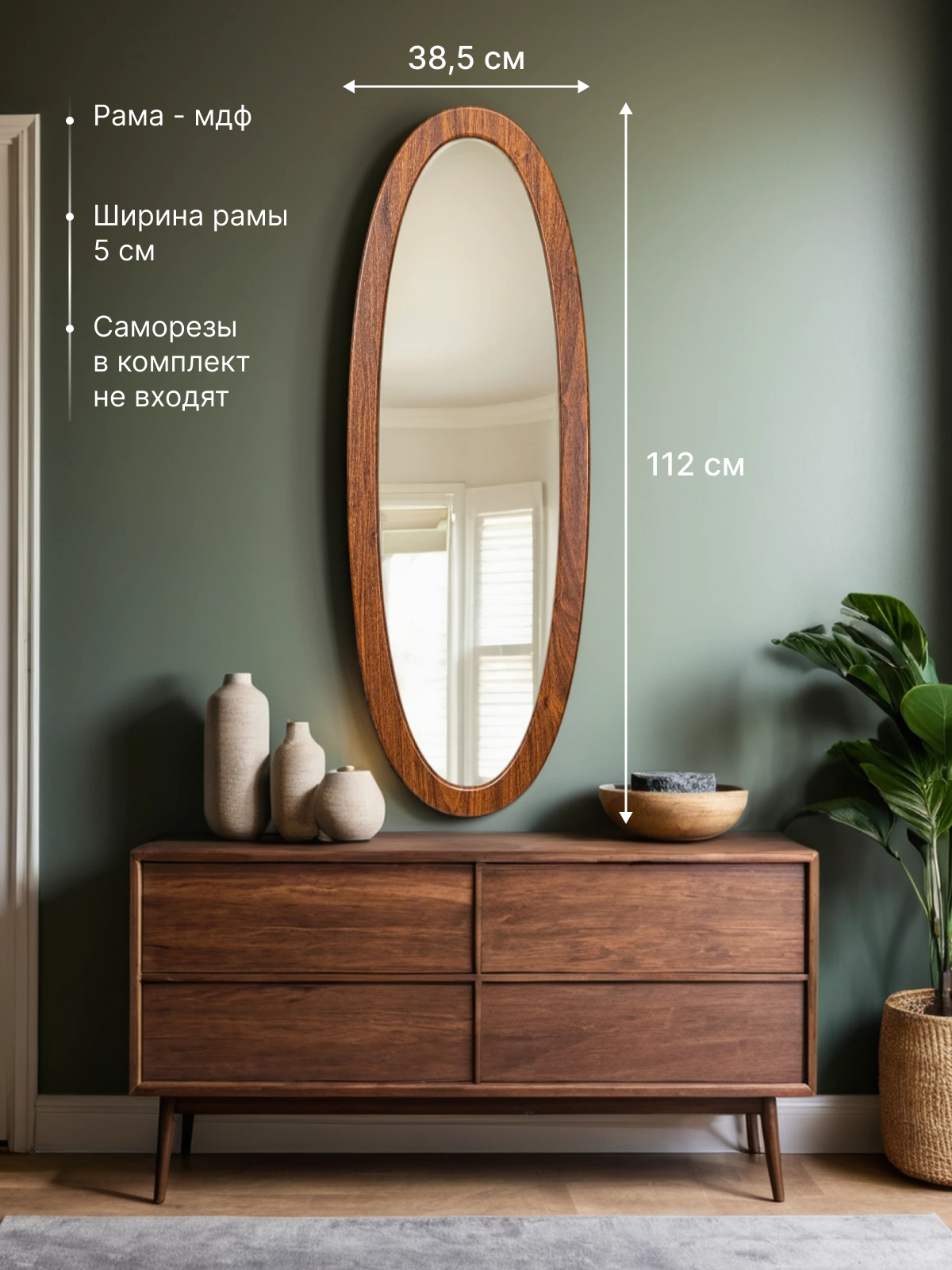 Зеркало GARRET "Летиция", настенное, овальное, рама из МДФ, цвет орех интересное: