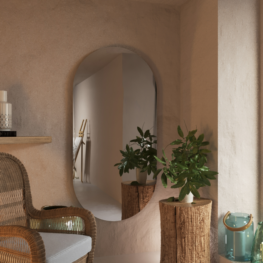 Зеркало напольное интерьерное в полный рост криволинейное с напольной подставкой "Stone" 170смх70см