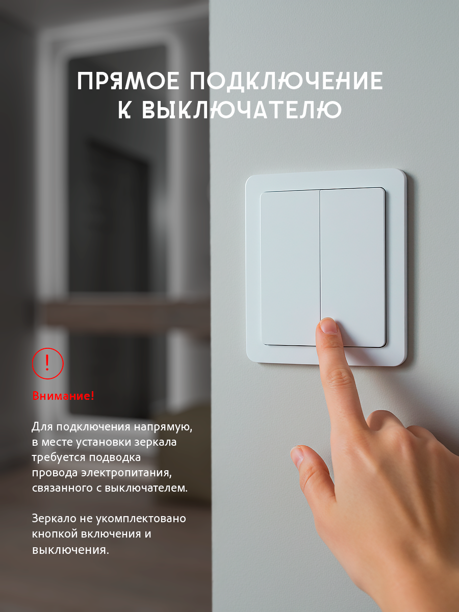 Зеркало настенное для ванной КерамаМане 70*100 см с холодной подсветкой 6000 К с сенсорной кнопкой