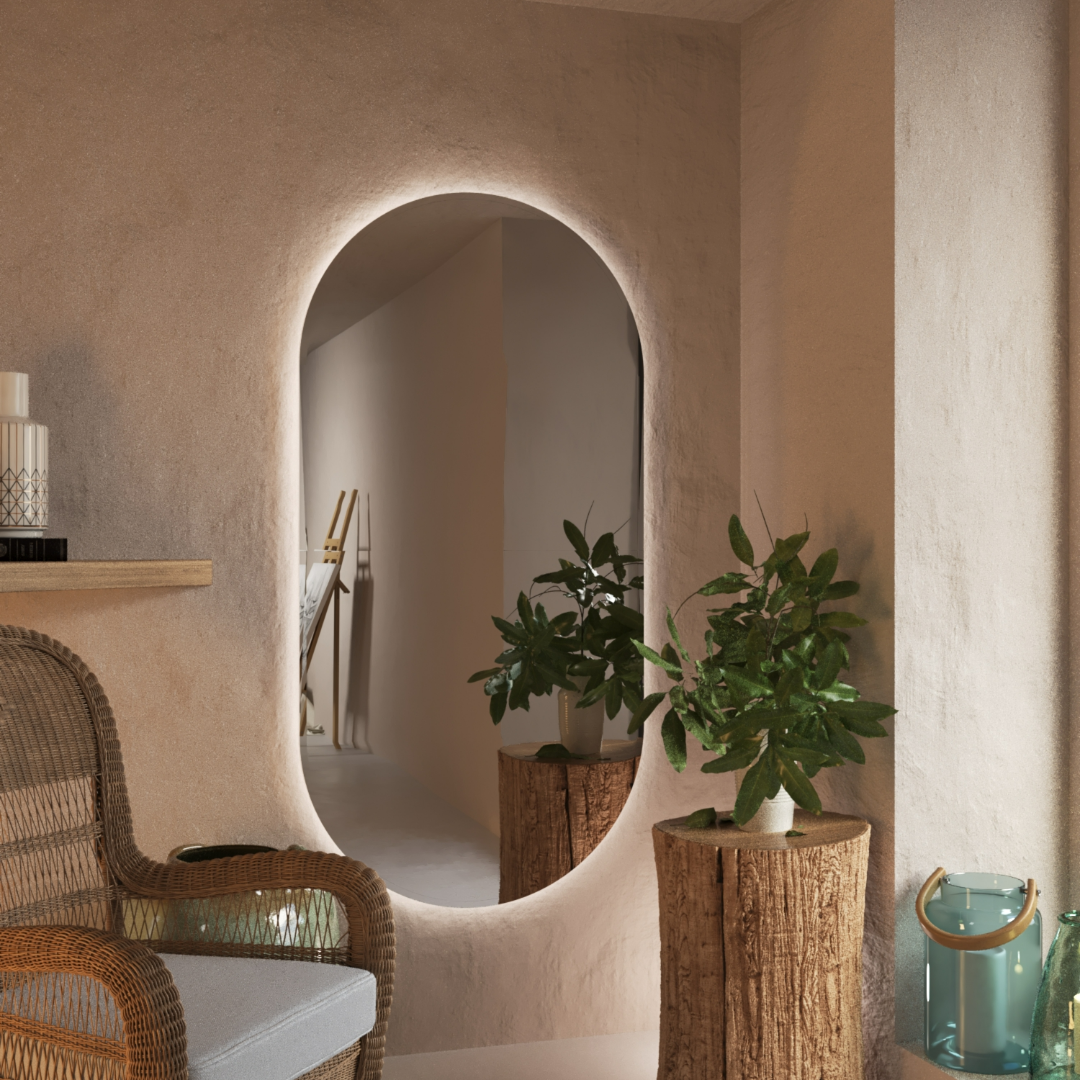 Настенное зеркало в полный рост овальное с подсветкой 6500К серии VERSALE безрамное настенное 158 см Х 78 см интерьерное интересное:
