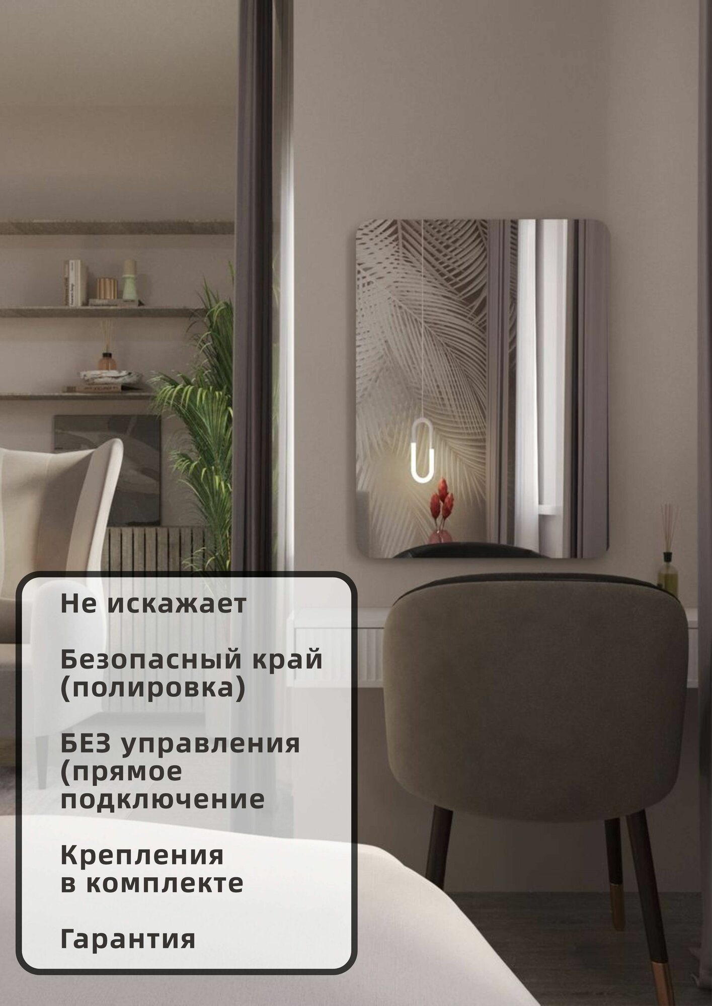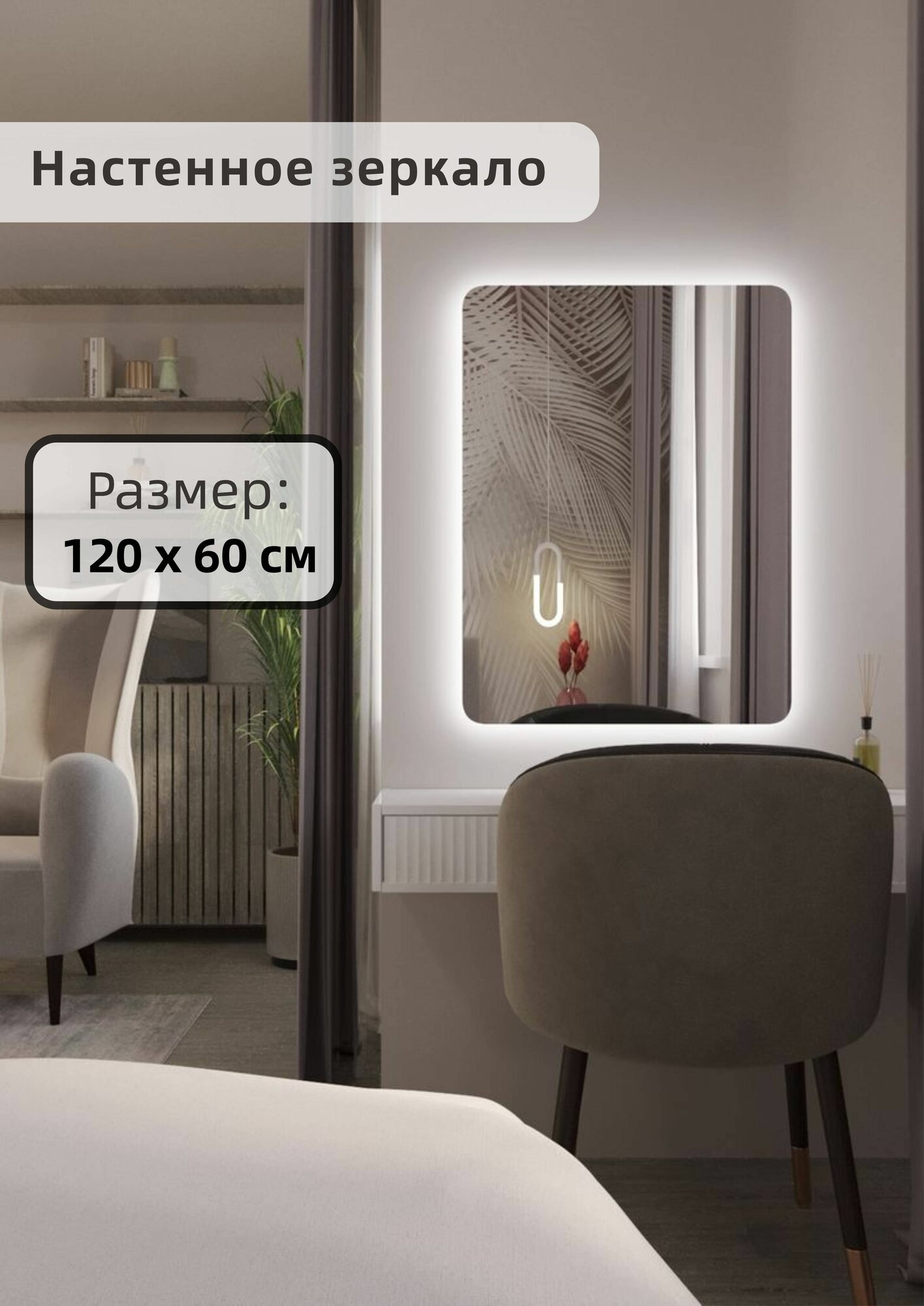 Зеркало без рамы 120х60 см с фоновой подсветкой 3000К теплый белый свет для прихожей, ванной и туалетного столика