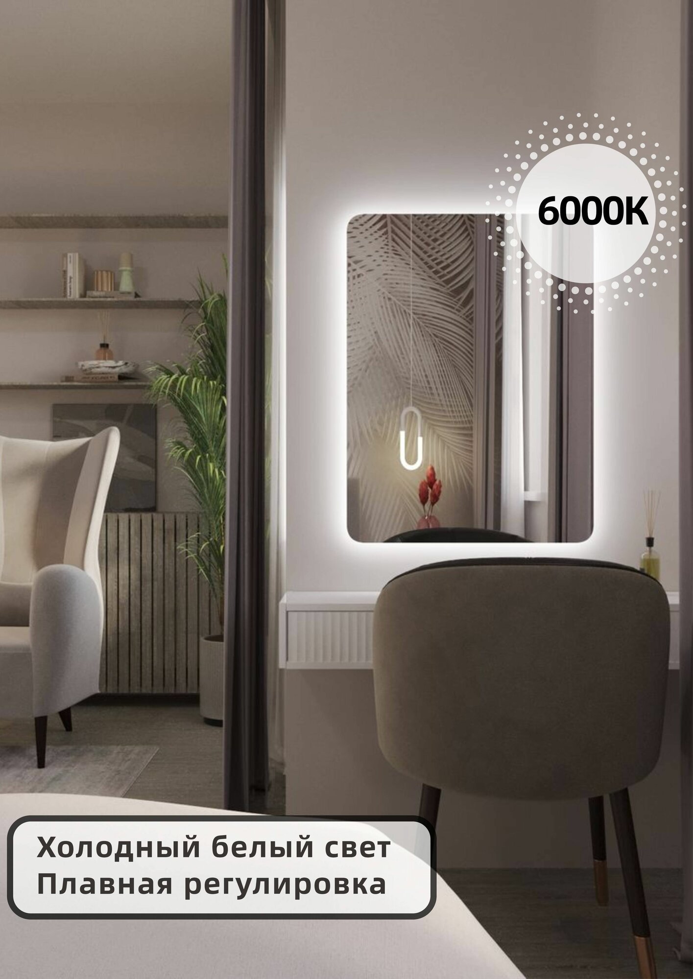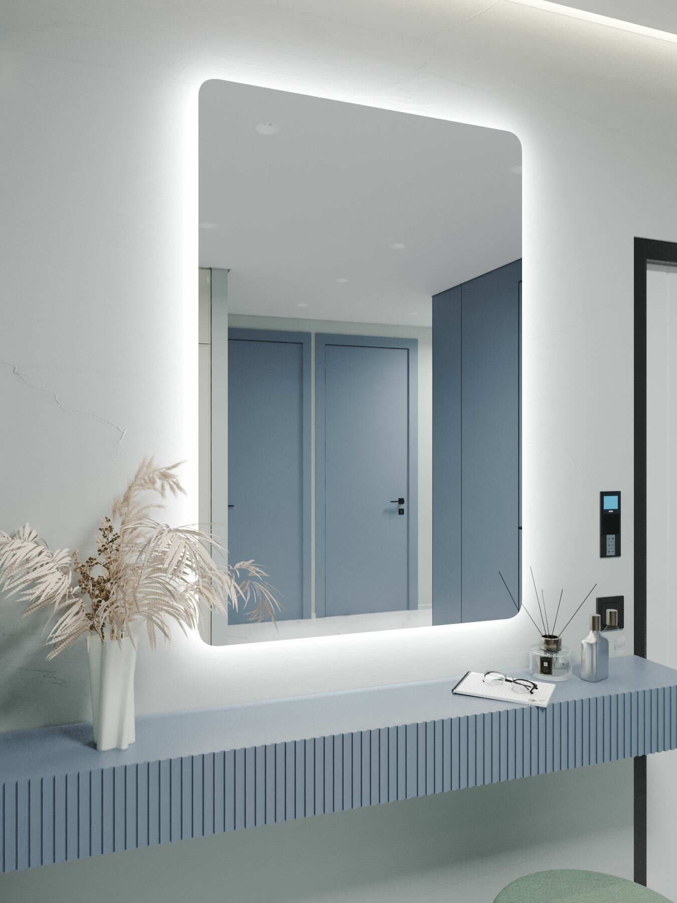 Зеркало настенное для ванной КерамаМане 70*100 см с холодной подсветкой 6000 К с сенсорной кнопкой