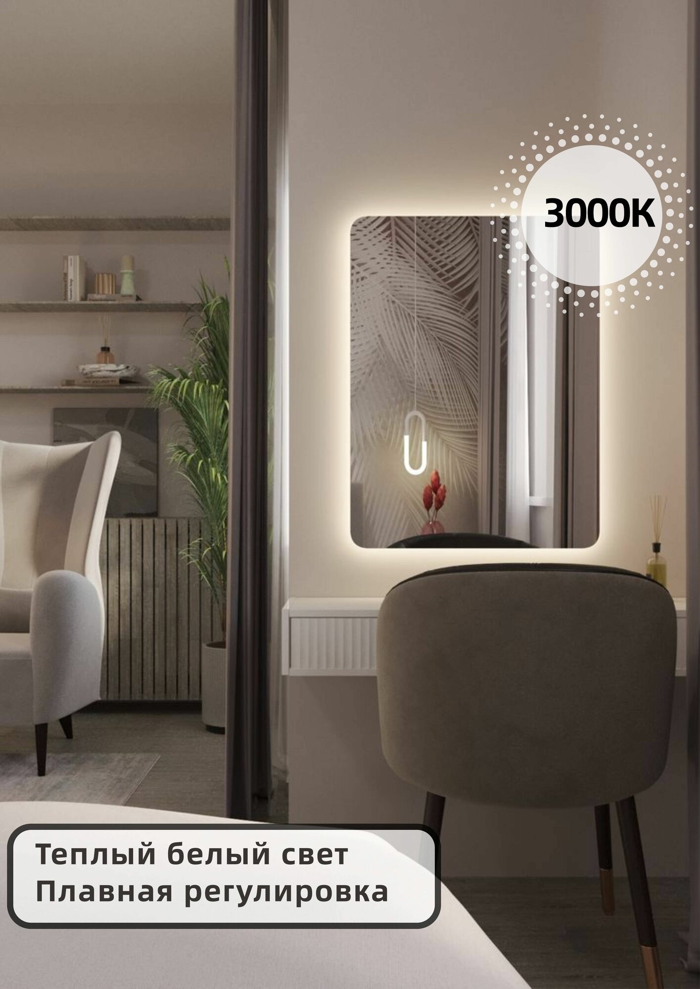 Купить Зеркало без рамы 120х60 см с фоновой подсветкой 3000К теплый белый свет для прихожей, ванной и туалетного столика