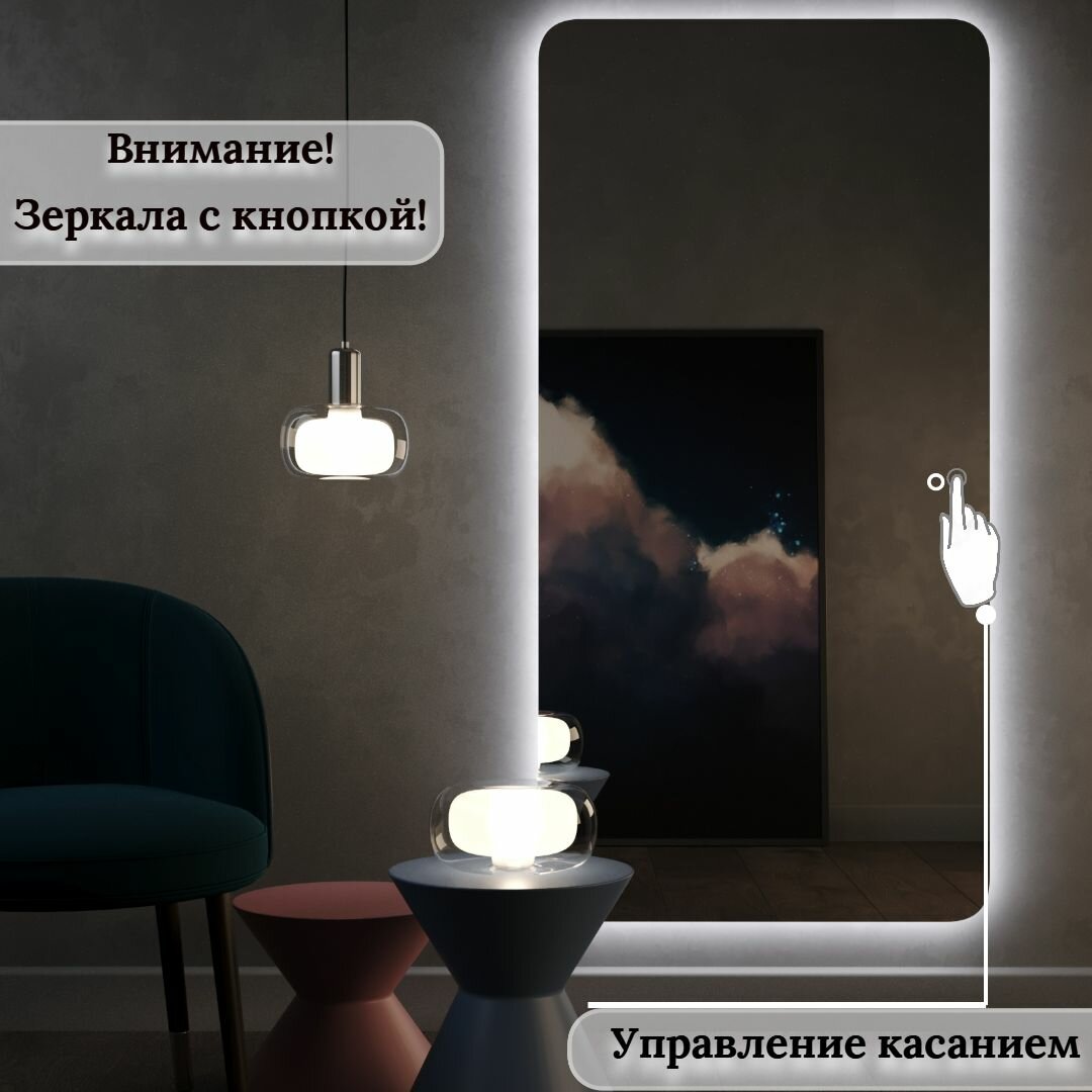 Зеркало настенное для ванной КерамаМане 70*100 см с холодной подсветкой 6000 К с сенсорной кнопкой